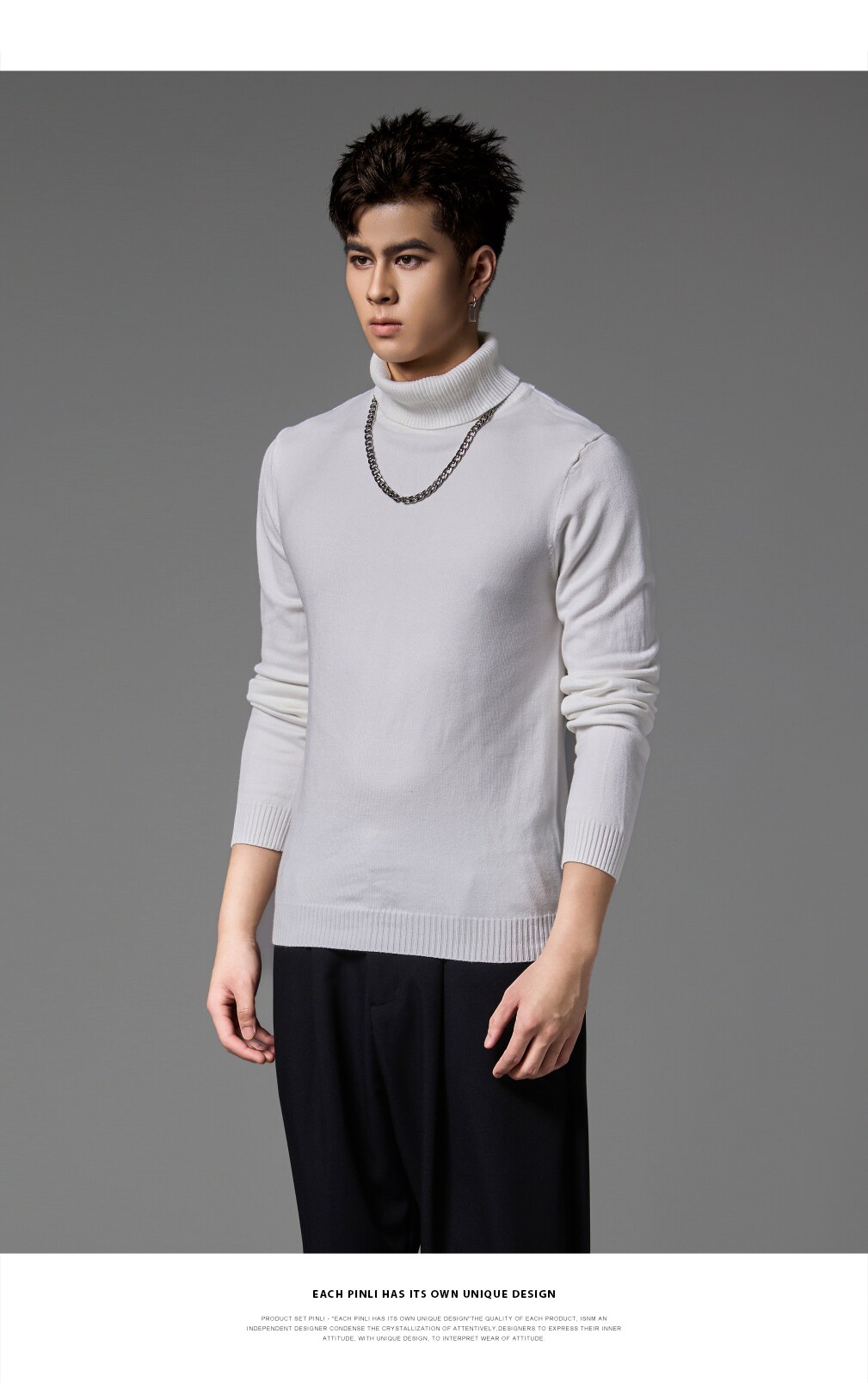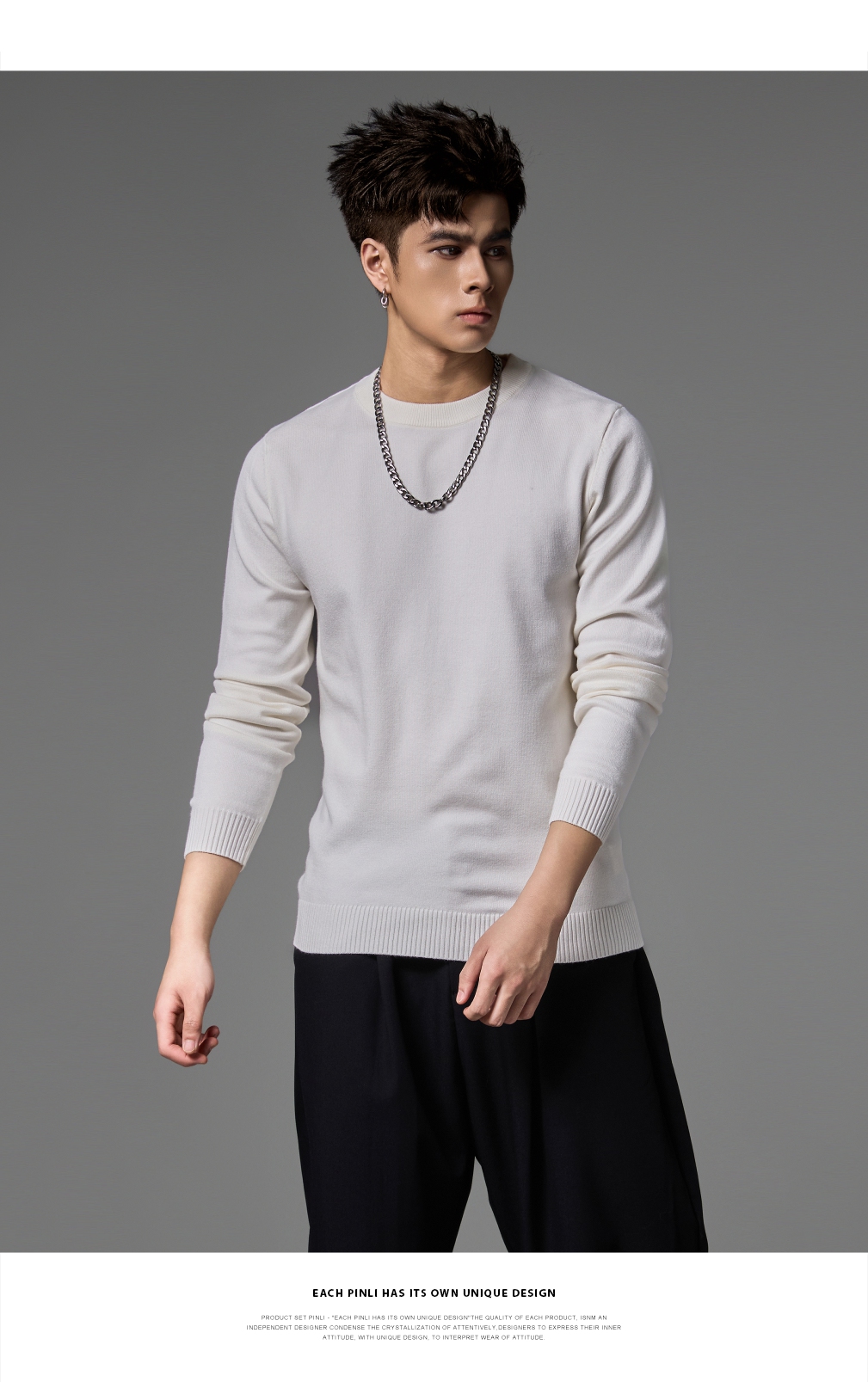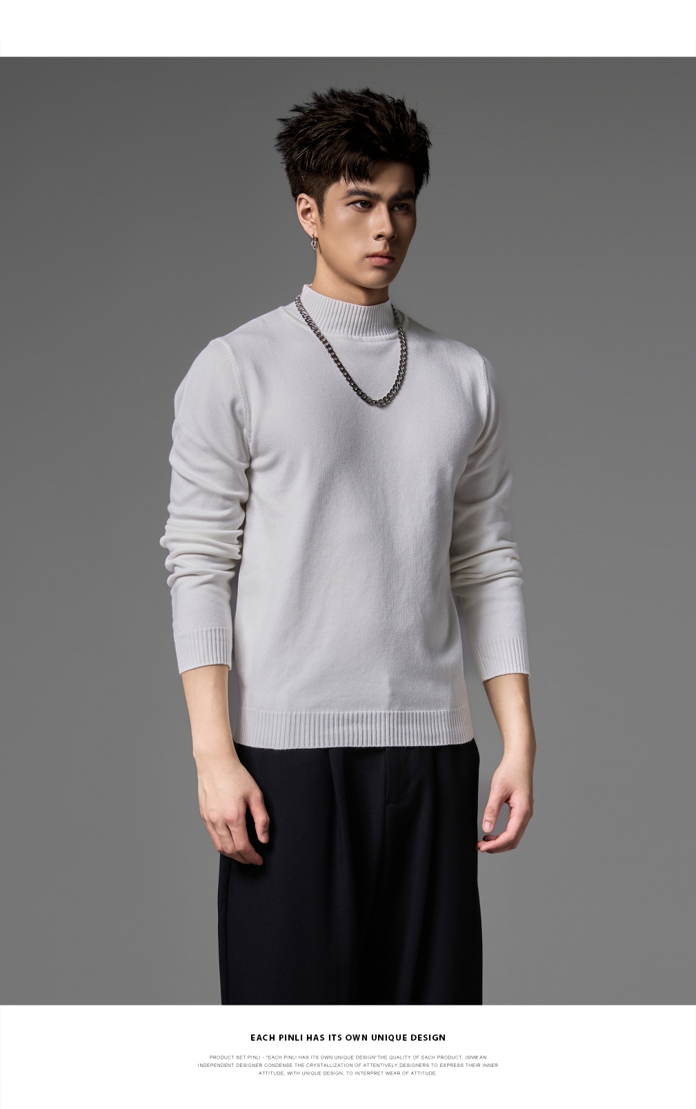 PINLI品立2024秋季新款男士纯色百搭针织衫打底毛衣保暖上衣内衣GD243310428