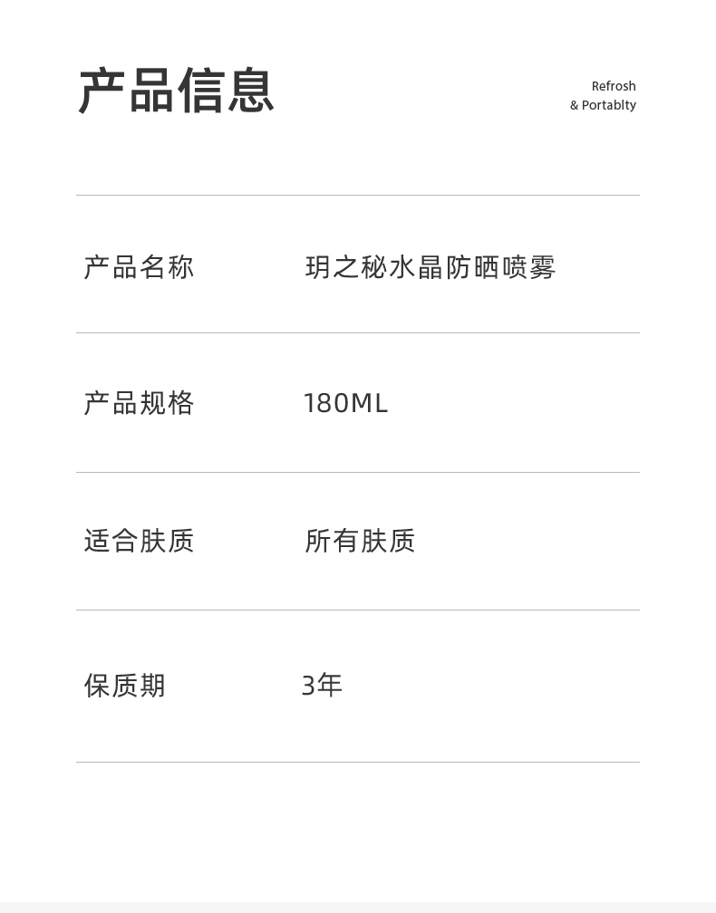 韩国玥之秘水晶防晒喷雾180ml SPF50+++