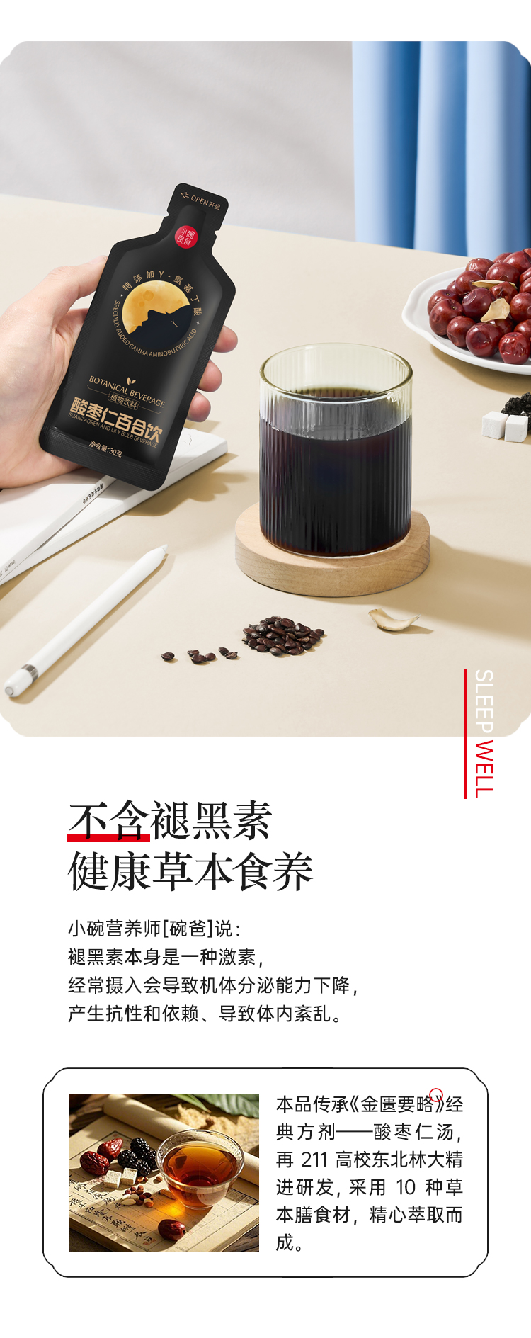 小碗酸枣仁百合饮 野生酸枣仁+γ-氨基丁酸 无添加草本安睡植物饮 开袋即饮30g*10袋