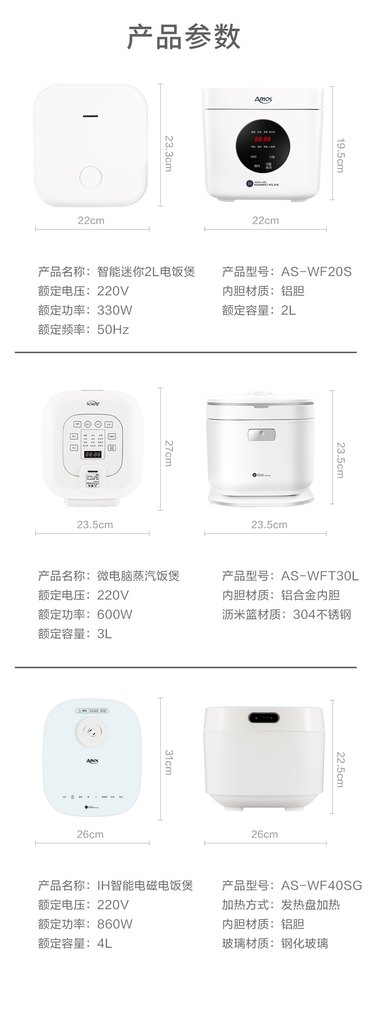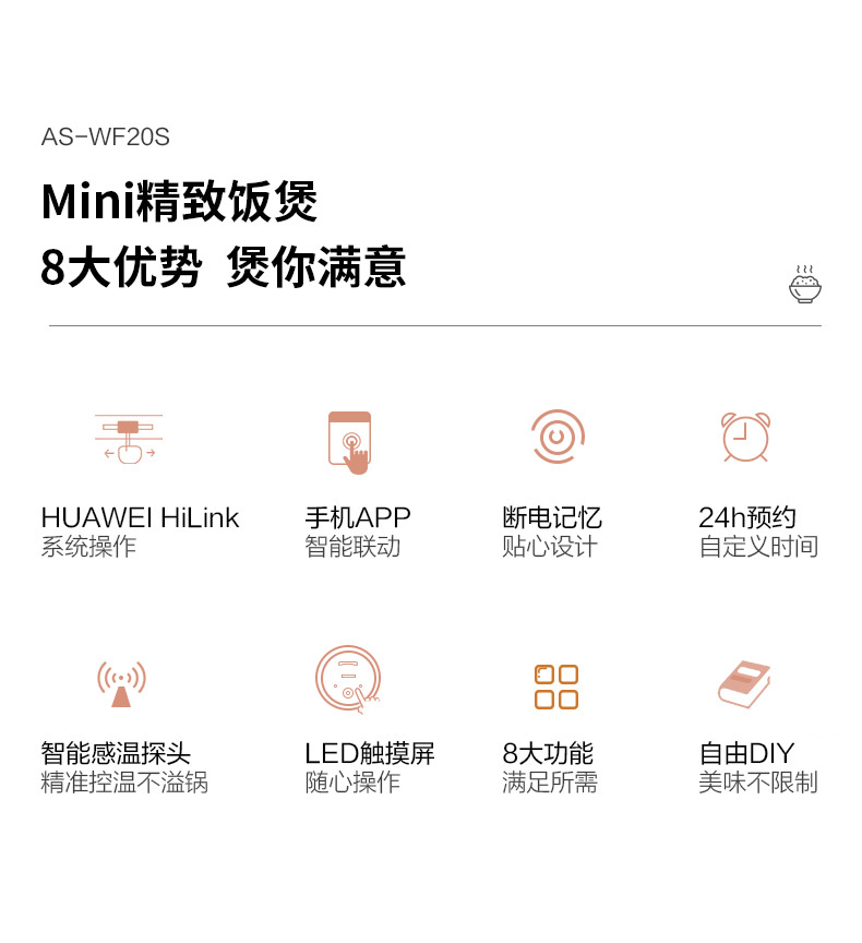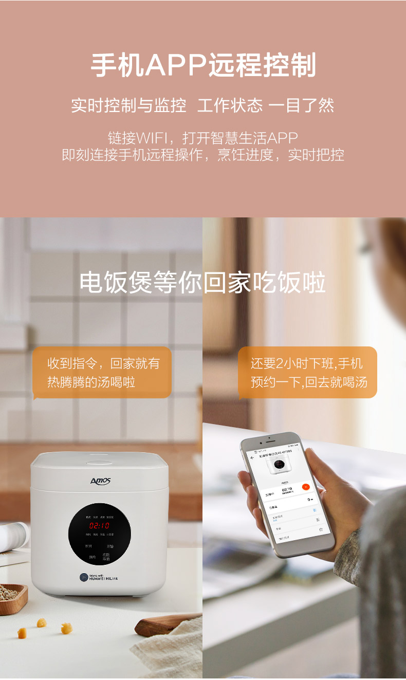 亚摩斯(Amos)华为Hilink电饭煲智能家用多功能电饭锅蒸米饭锅2升迷你电饭煲IH AS-WF20S