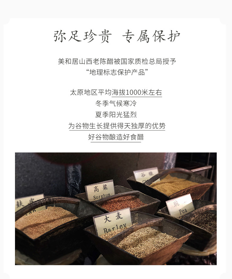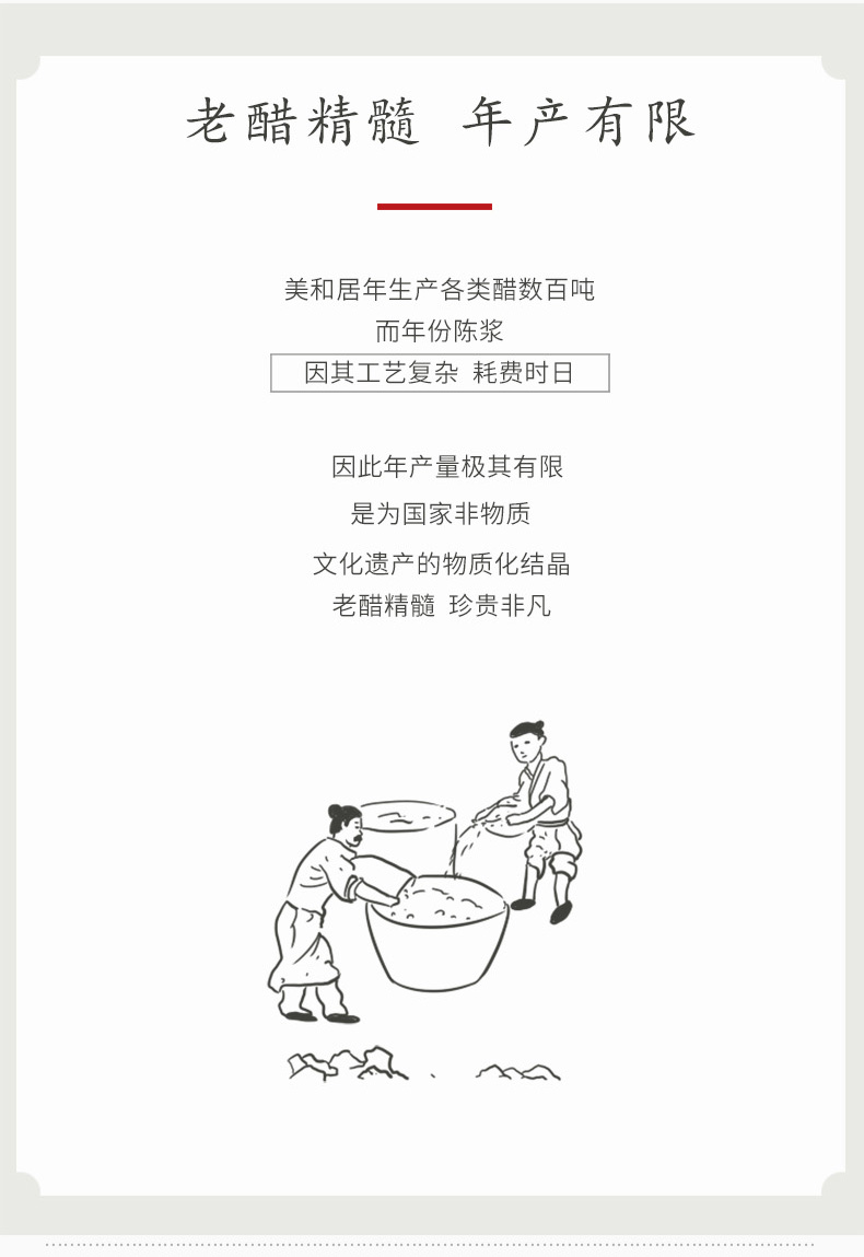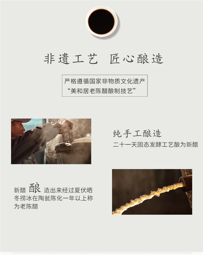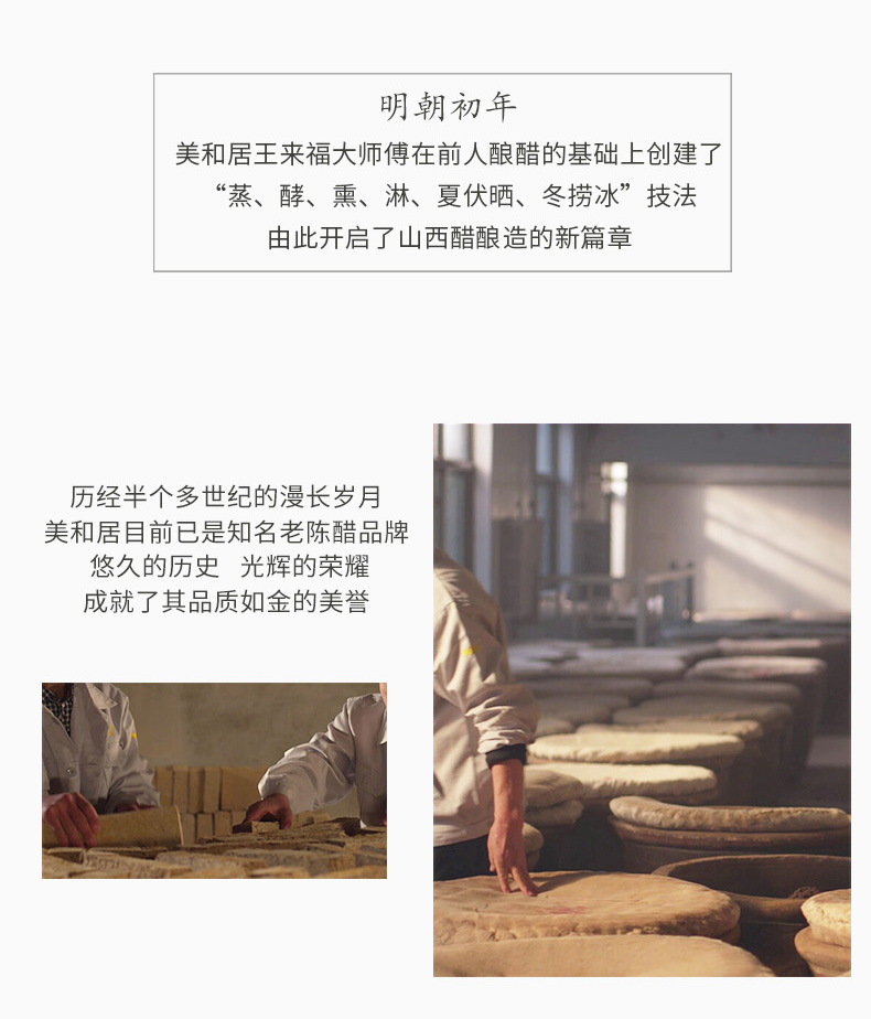 - 美和居始创于1368年,为山西老陈醋开创者,国家级非物质文化遗产酿制技艺,国家地理标志保护产品!