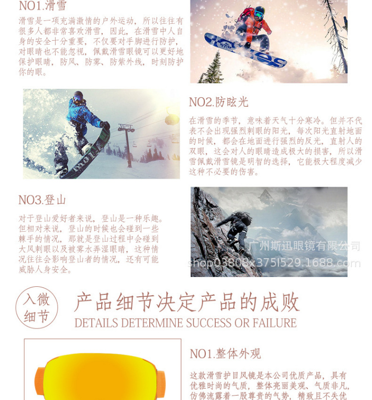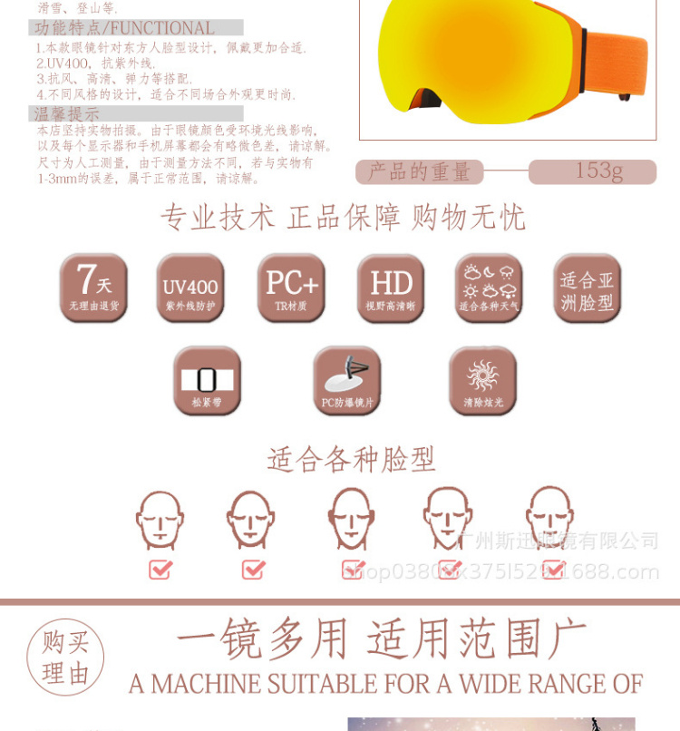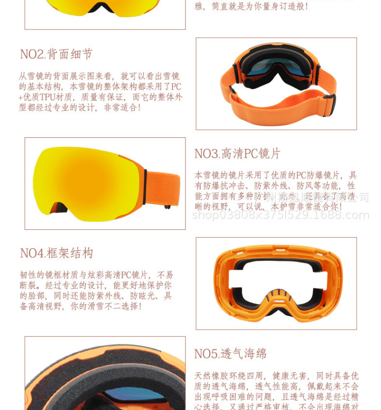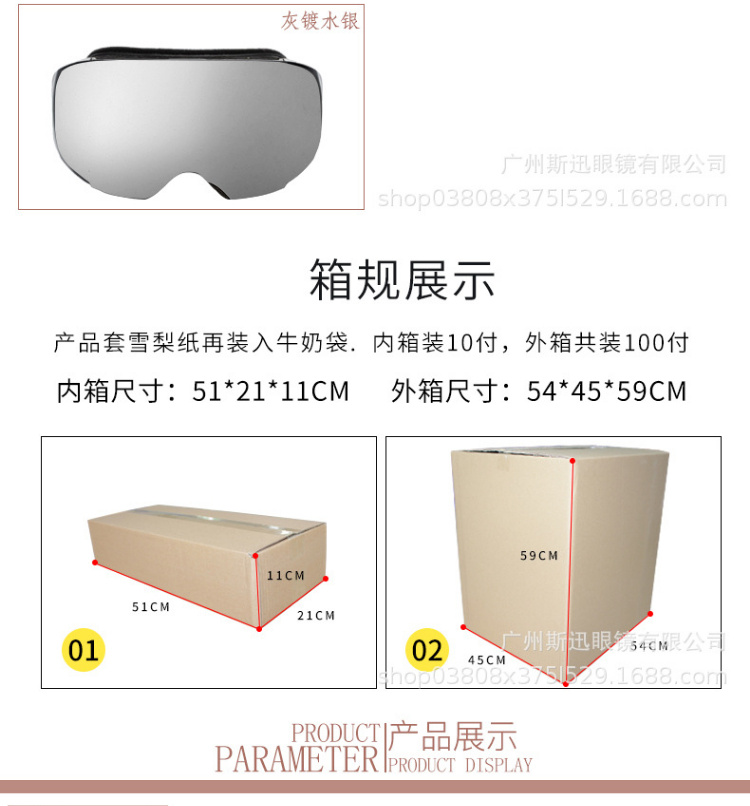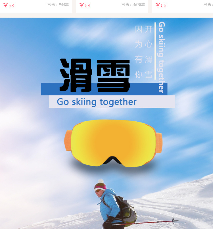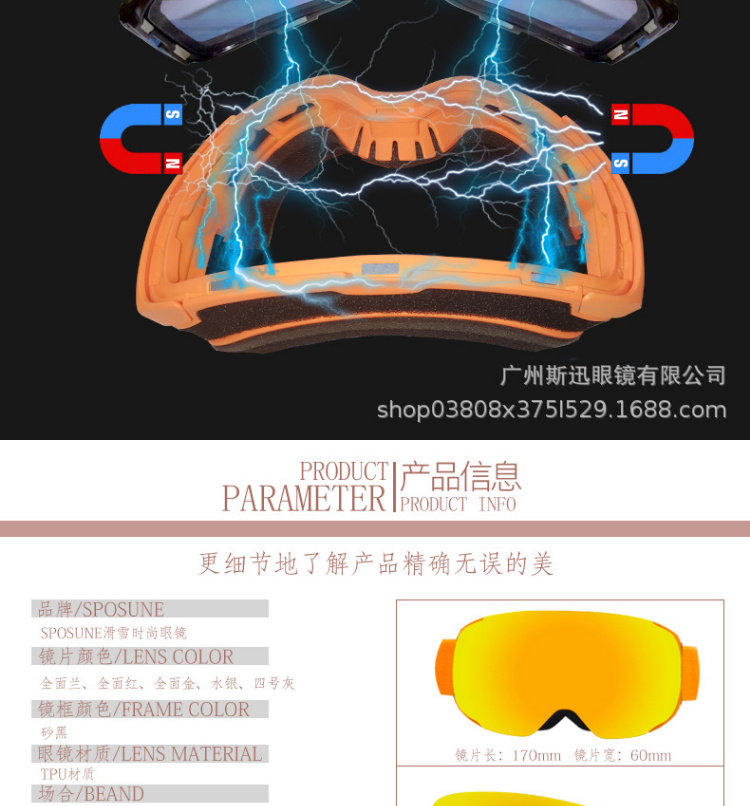 【运动装备】SPOSUNE双层防雾 可卡近视男女滑雪 大球面 高清 磁铁