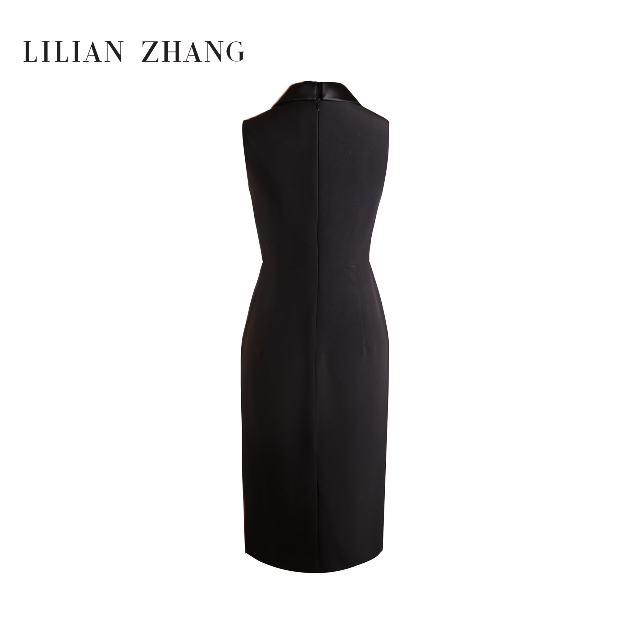 轻奢、邂逅经典—缎面青果领无袖连衣裙 -修身立裁礼服裙 2301030