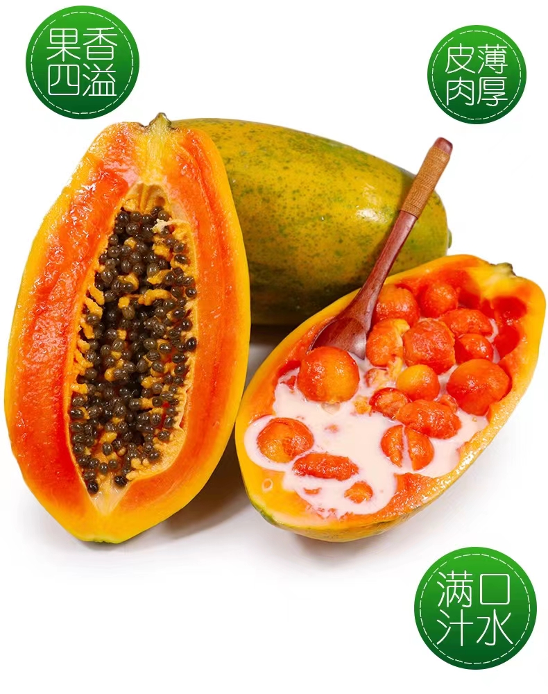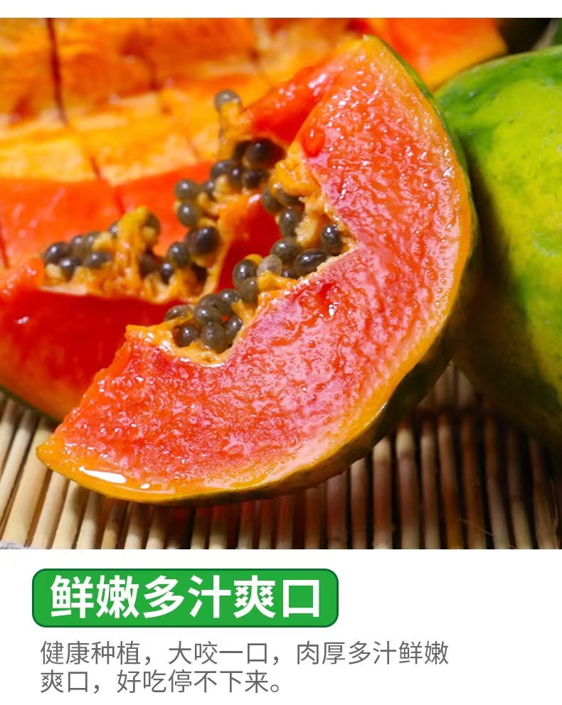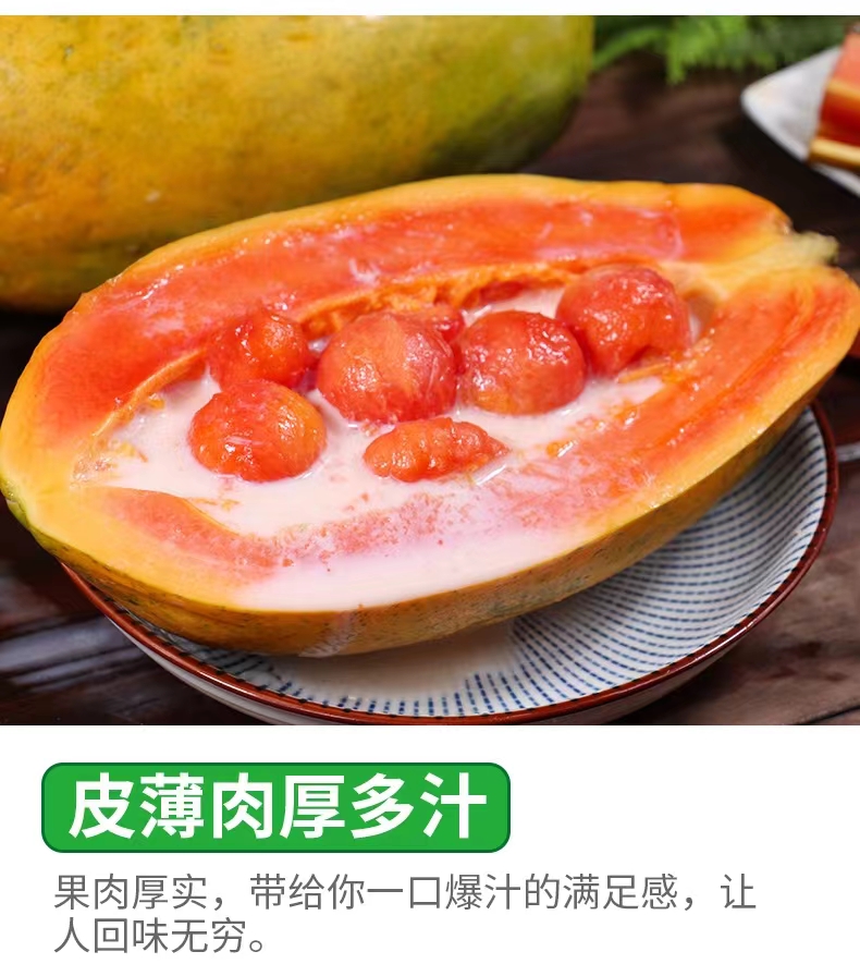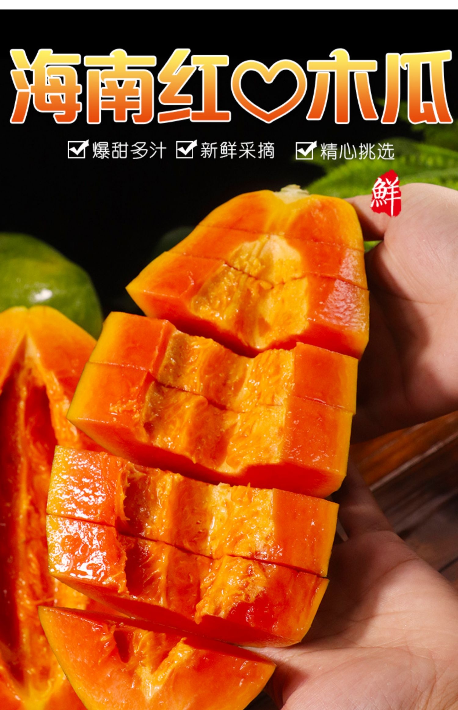 【海南冰糖红心木瓜】树上"甜心"!一口咬住热带阳光——冰糖红心木瓜,树上自然熟,果肉香甜嫩滑~比德芙还要丝滑,吃一口,就爱上!
