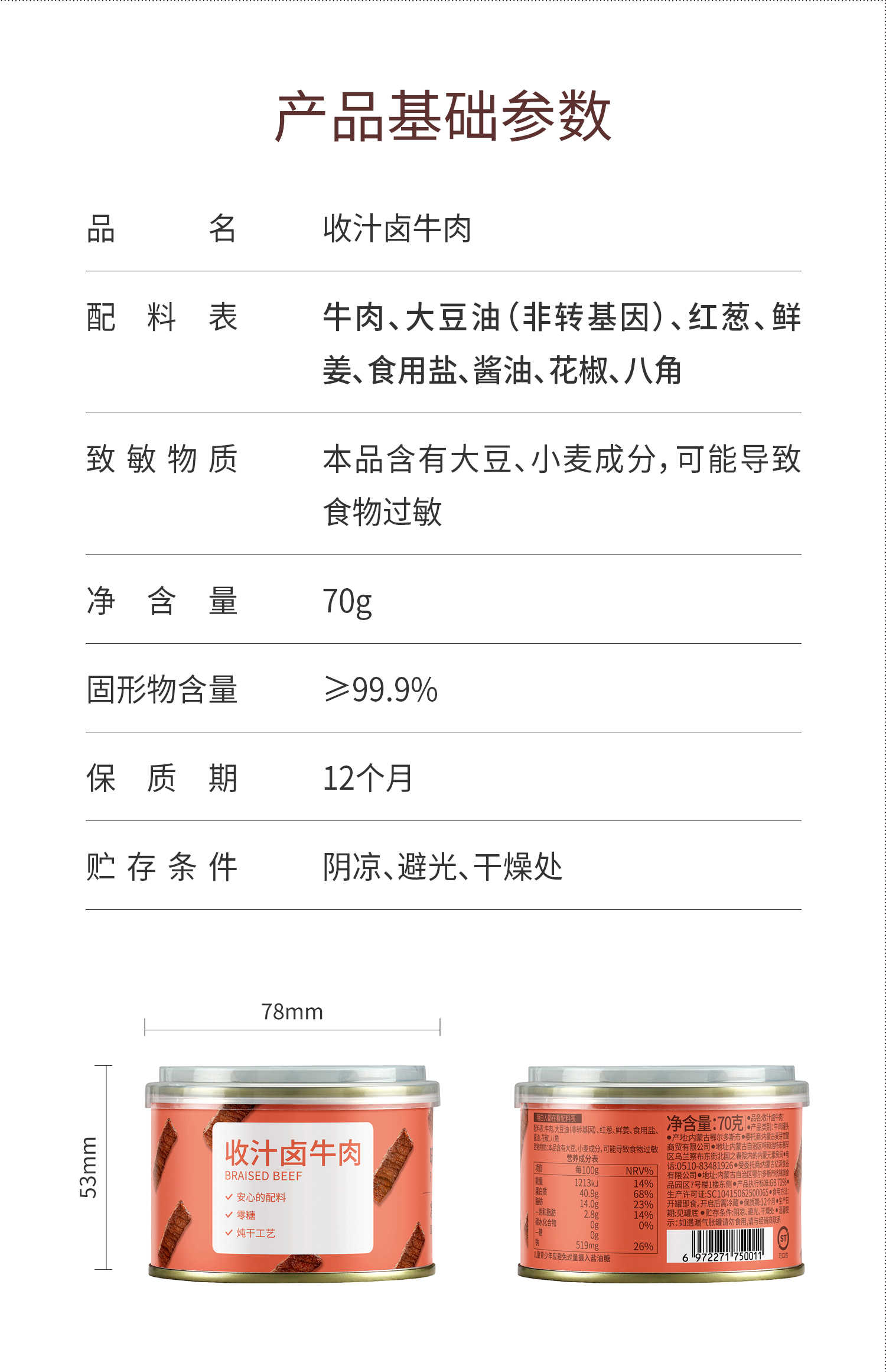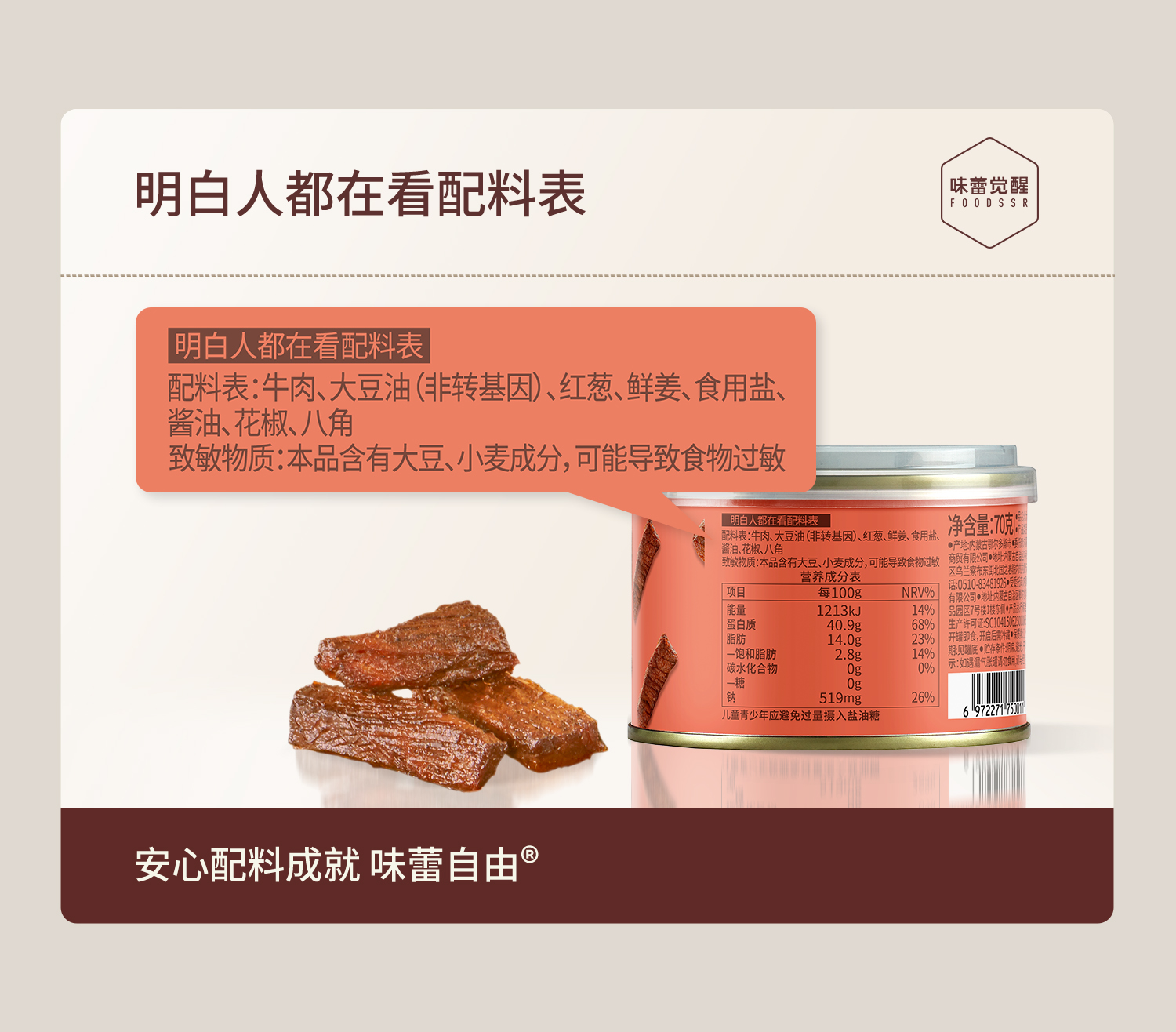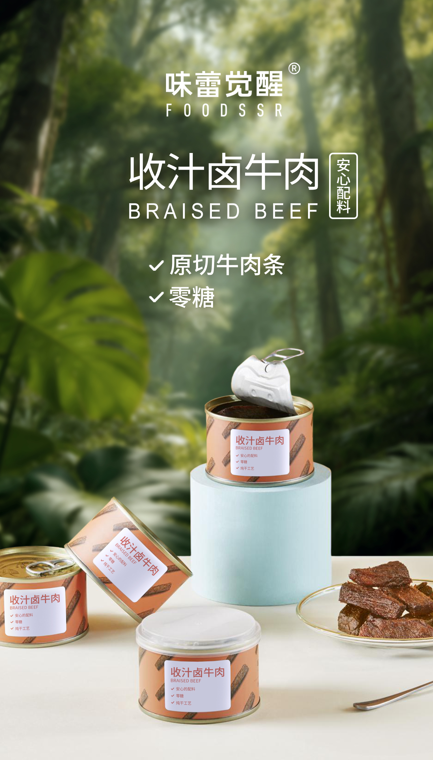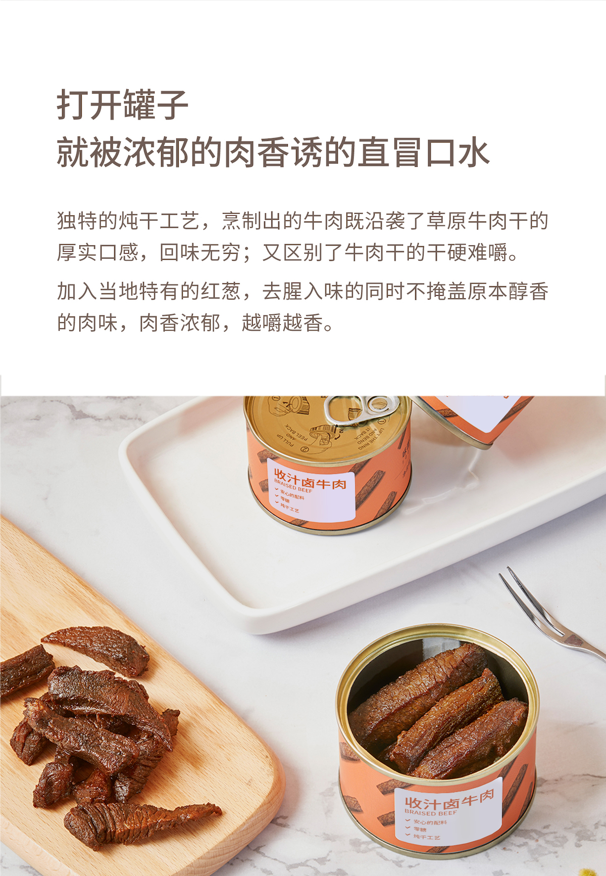 味蕾觉醒 收汁卤牛肉 安心配料 零糖 高蛋白原切牛肉条 无汤汁开罐即食