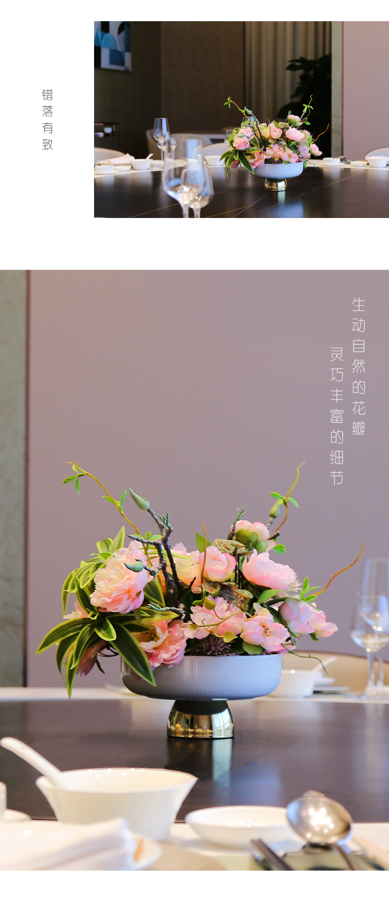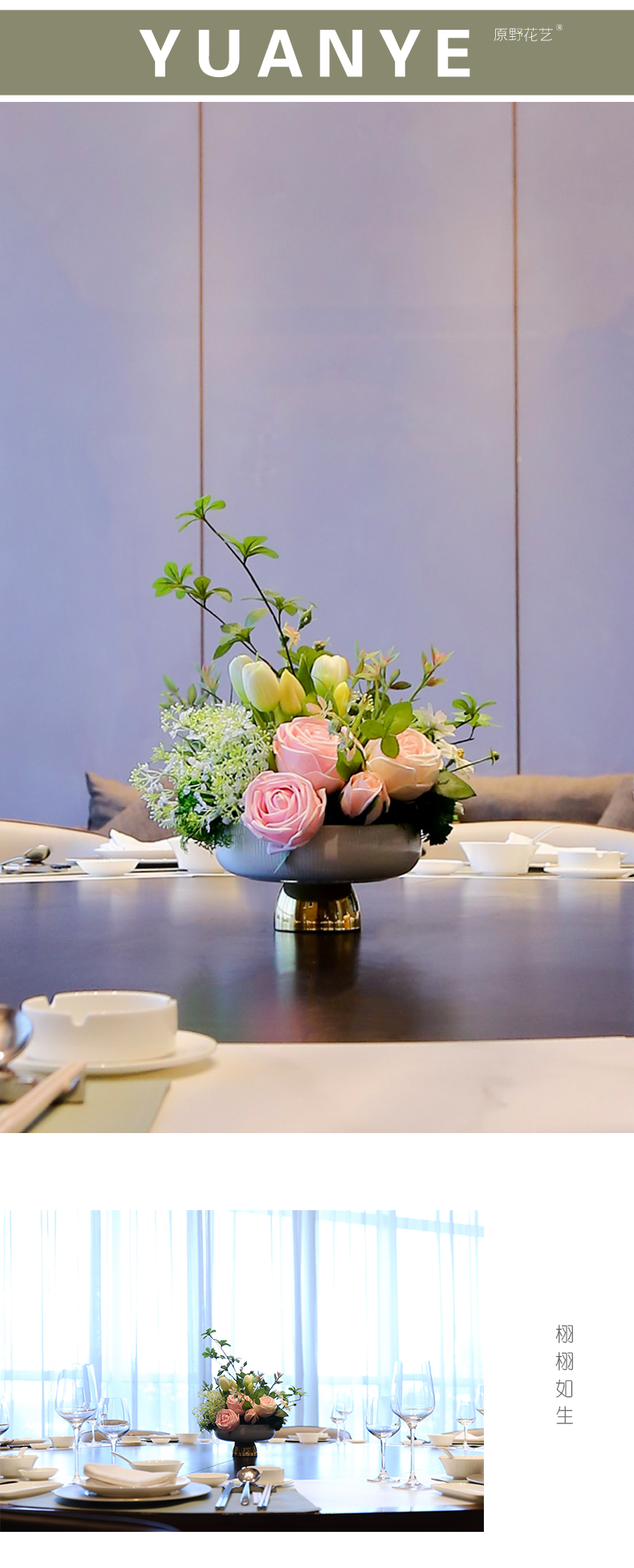 高端餐桌花摆花酒店餐厅茶室客厅玄关摆设件茶几轻奢装饰仿真假花