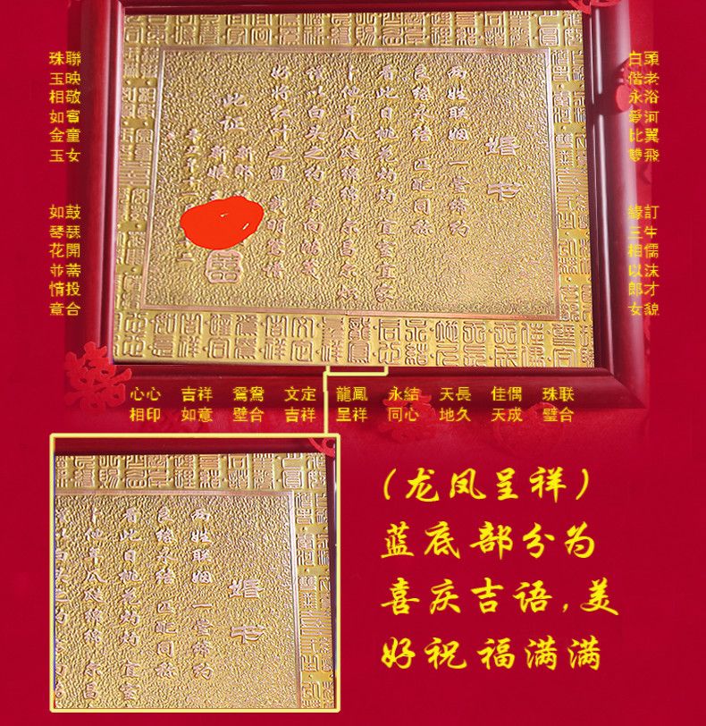 【结婚仪式感】高定中式婚书铜版铜板铜制订婚书手工定制结婚用品礼品铜皮制【属于手工定制不退换 15天内发货】