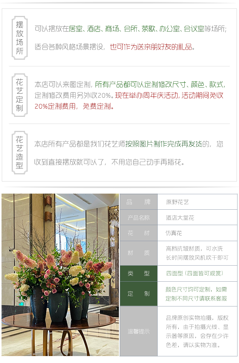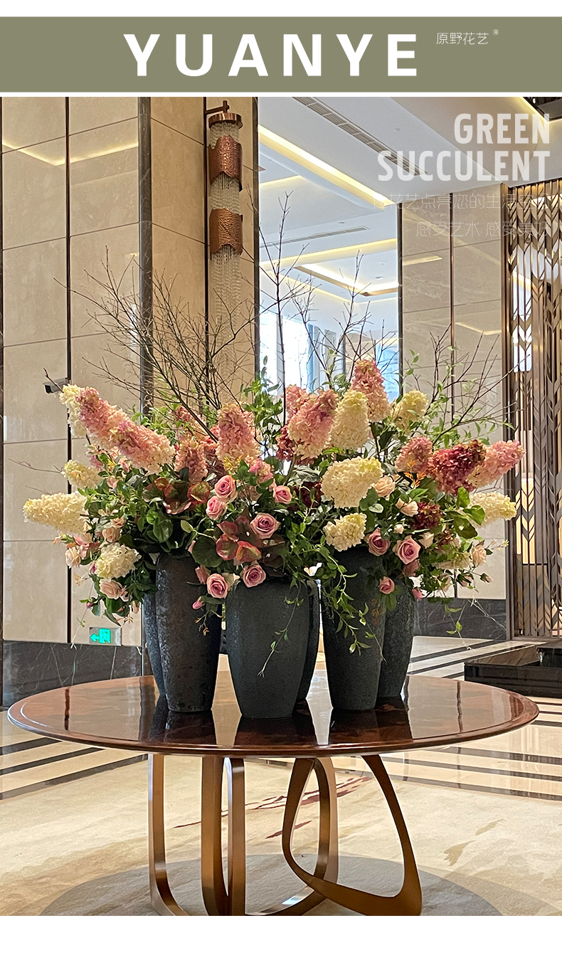 高档酒店大堂仿真花摆件大型大厅中庭圆桌面前台别墅商场装饰假花