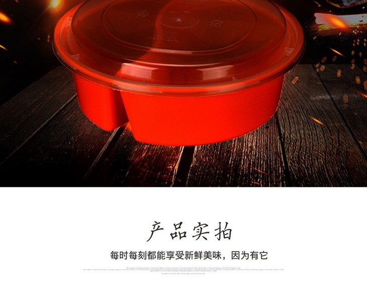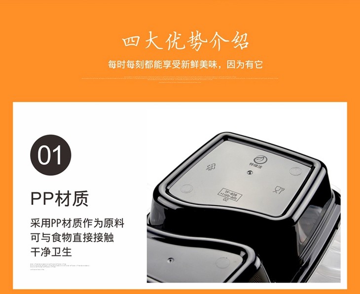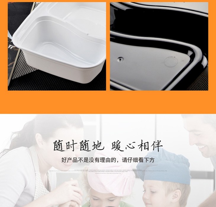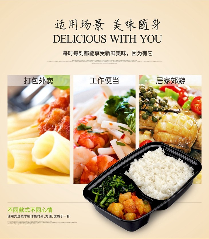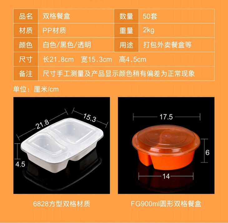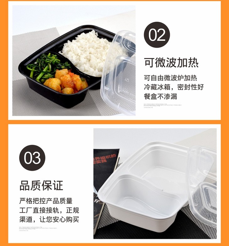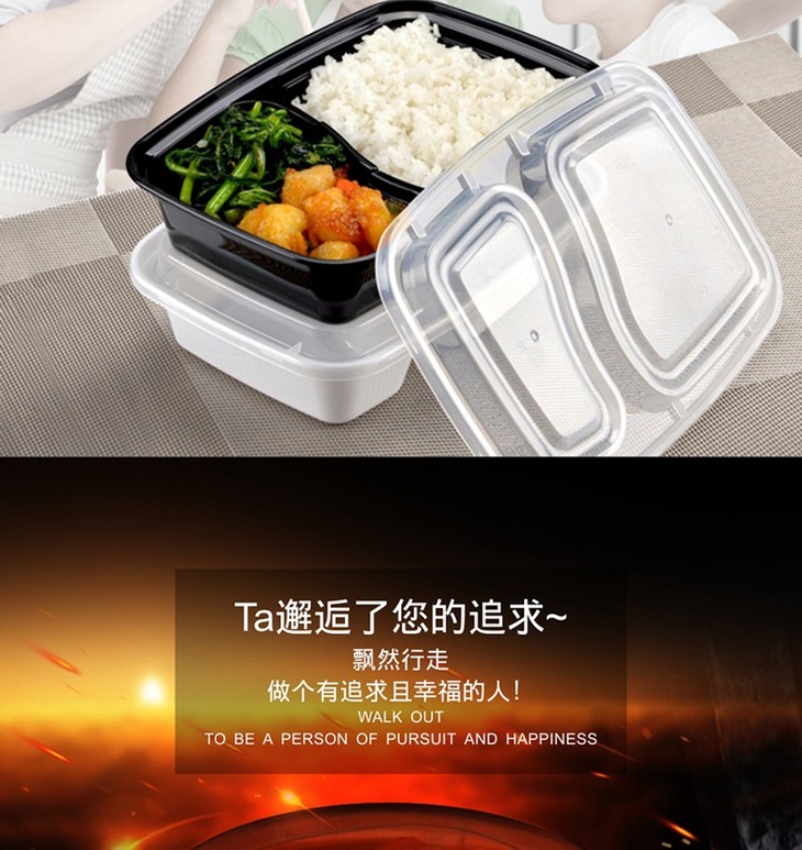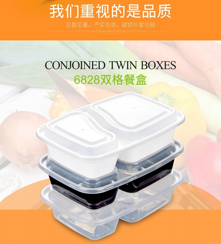 喇叭花1000ml黑色一次性双格便当盒6828饭盒餐盒两格打包盒带盖50套