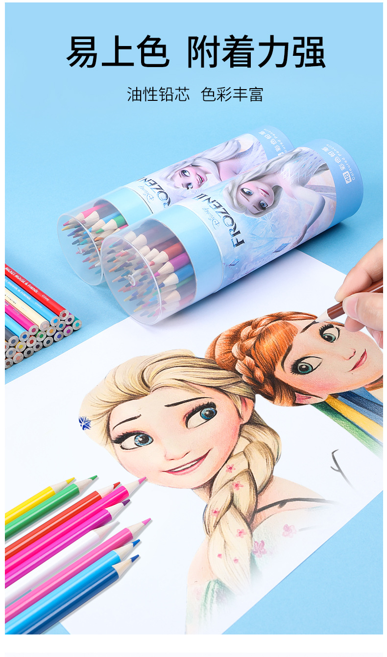 【迪士尼冰雪油性彩铅套装】12色儿童彩色铅笔小学生48涂鸦素描填色绘画笔