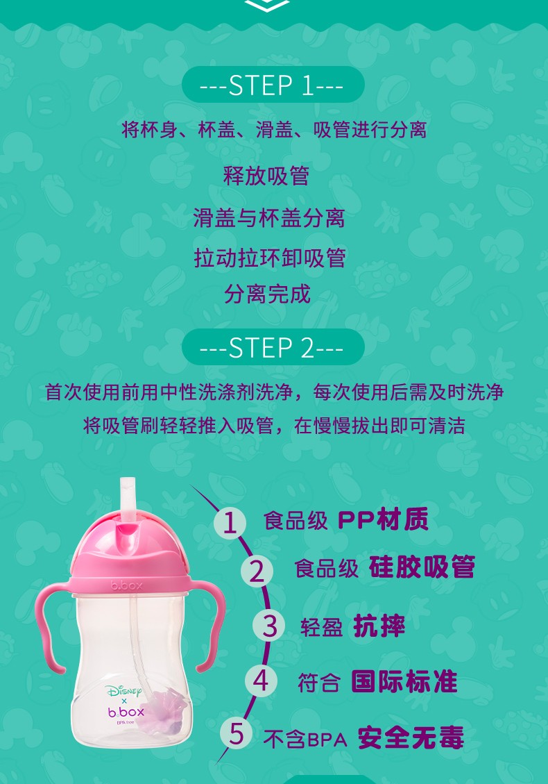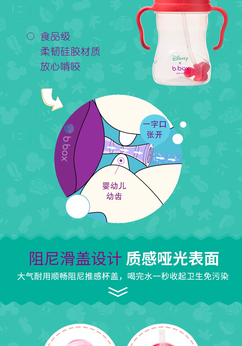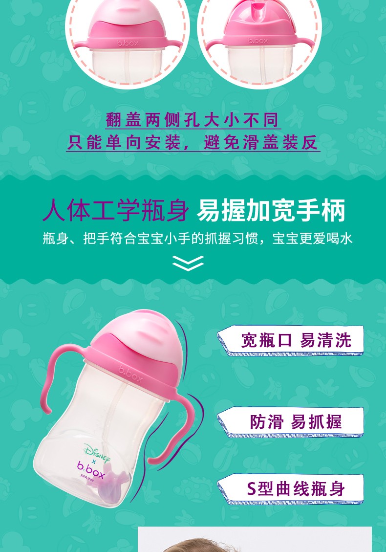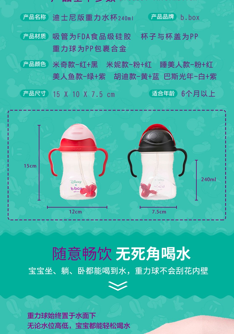 【360°畅饮】澳洲B.box迪士尼联名款儿童重力球防漏吸管杯240ml