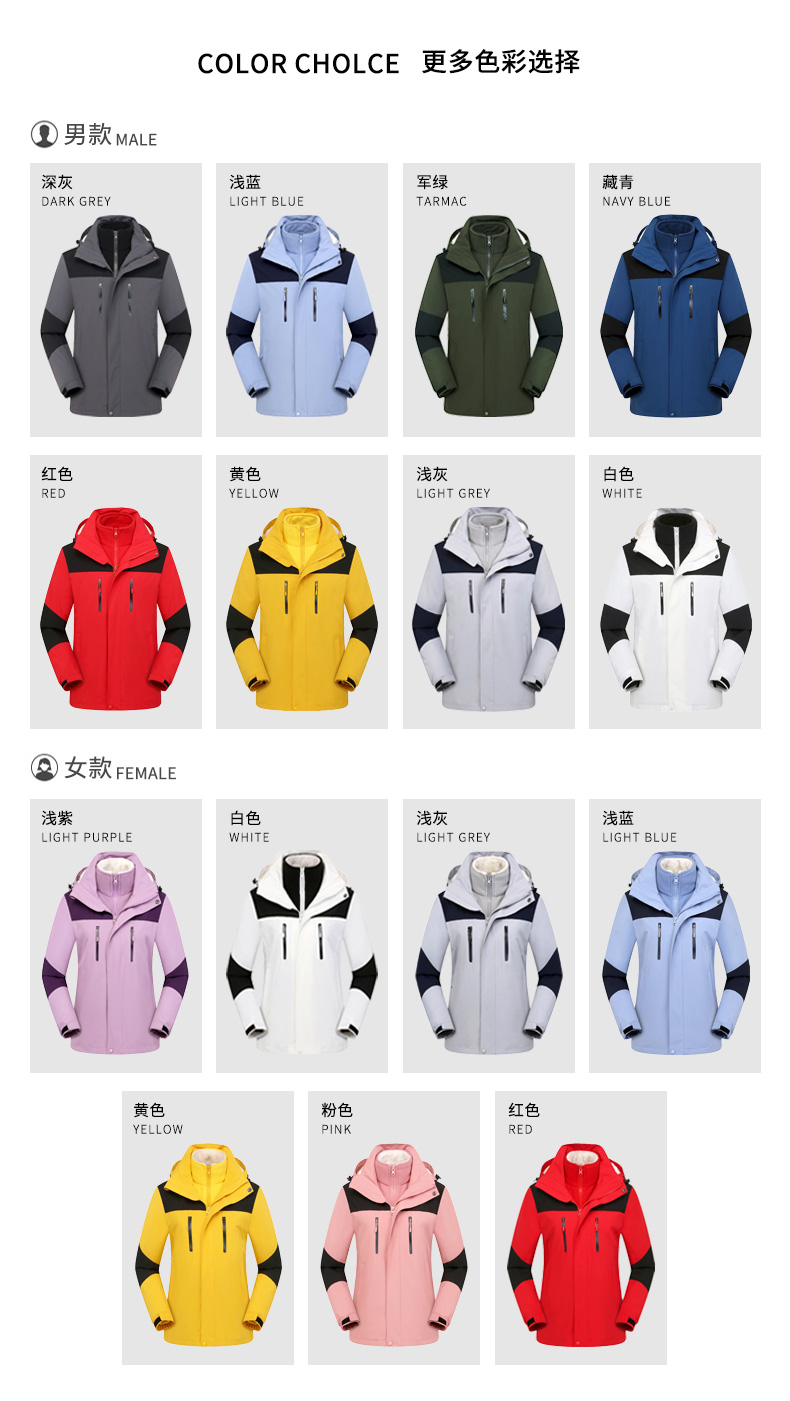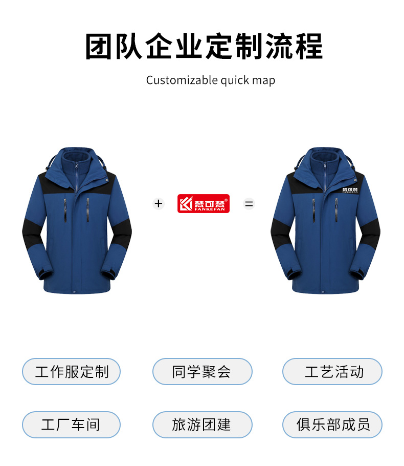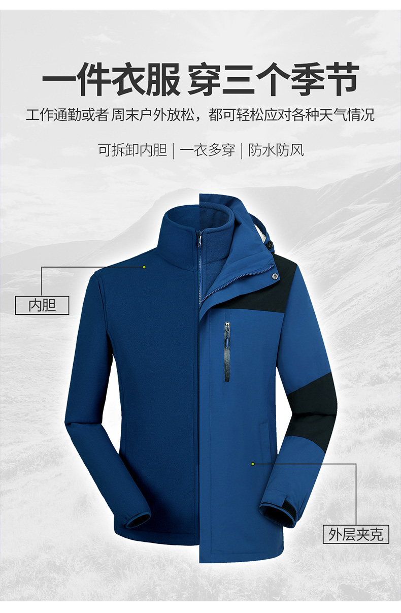 三合一户外冲锋衣定制印logo加绒加厚防风团体工作服男女冬季外套