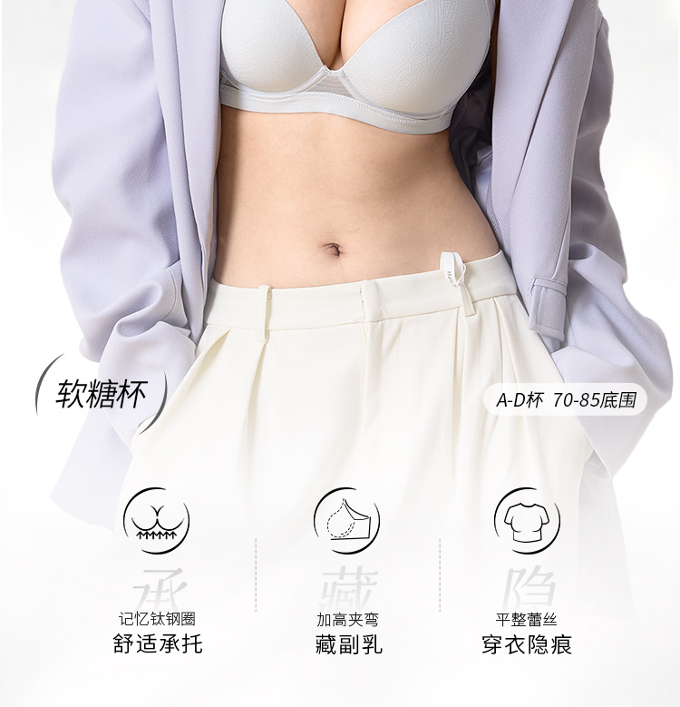 奶糖派软糖杯文胸大胸显瘦精致无痕隐形舒适包裹防凸点胸罩内衣女