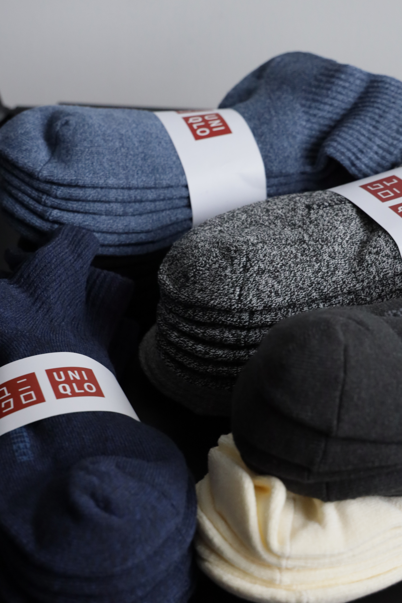 秋冬中帮毛圈袜 三双一卡 U.N.Q元单HEATTECH 40-45