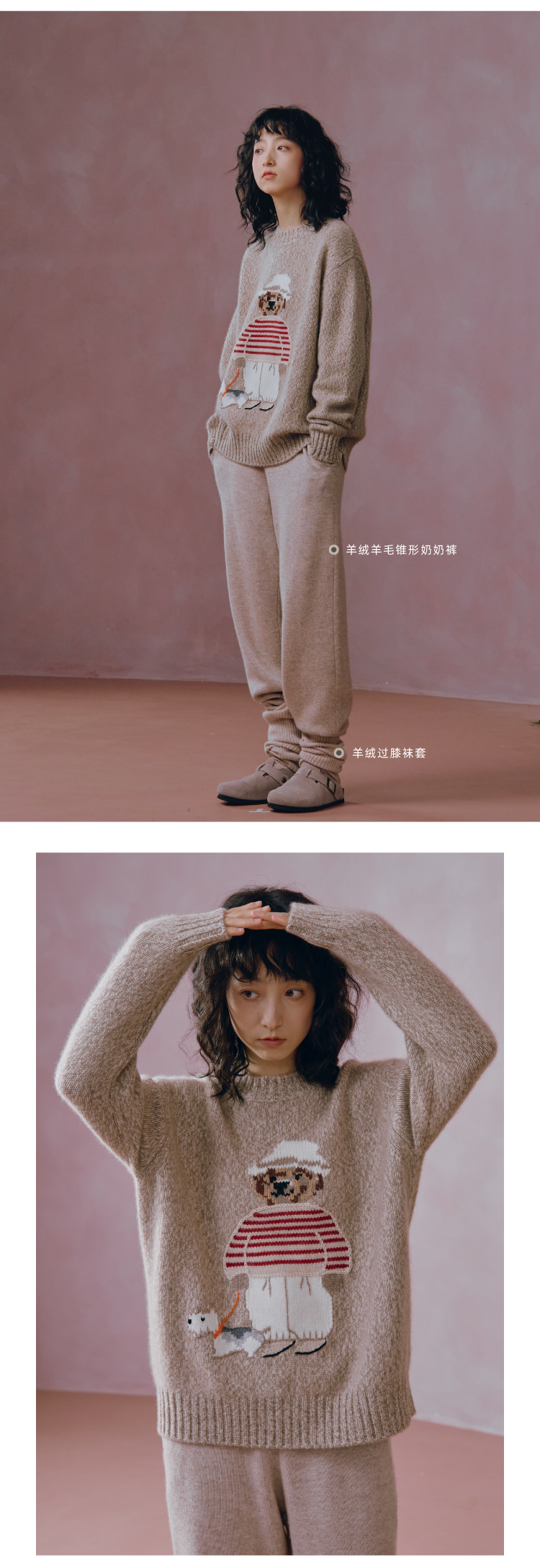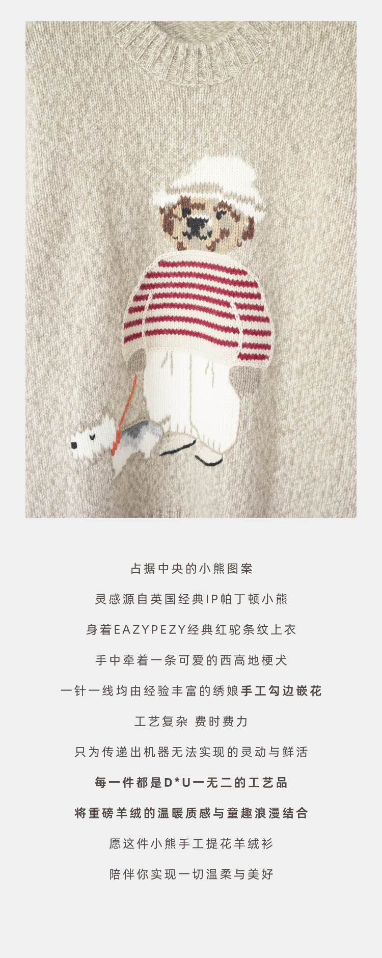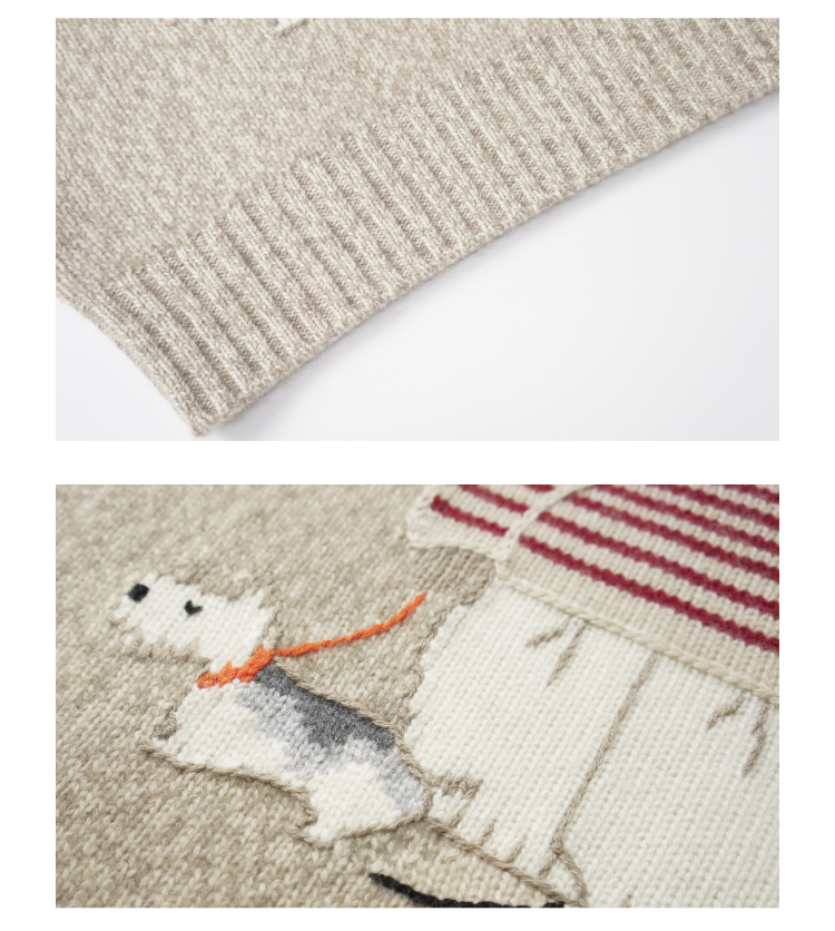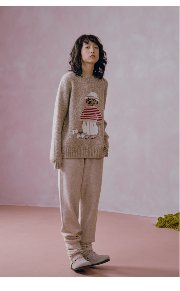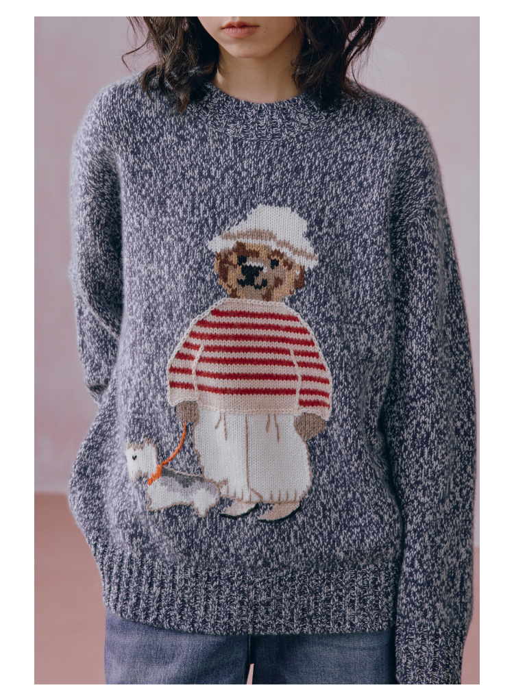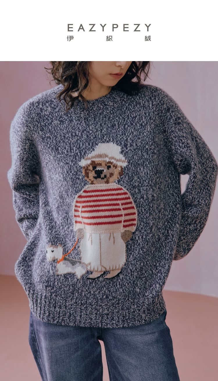 小熊手工提花杂色羊绒衫
