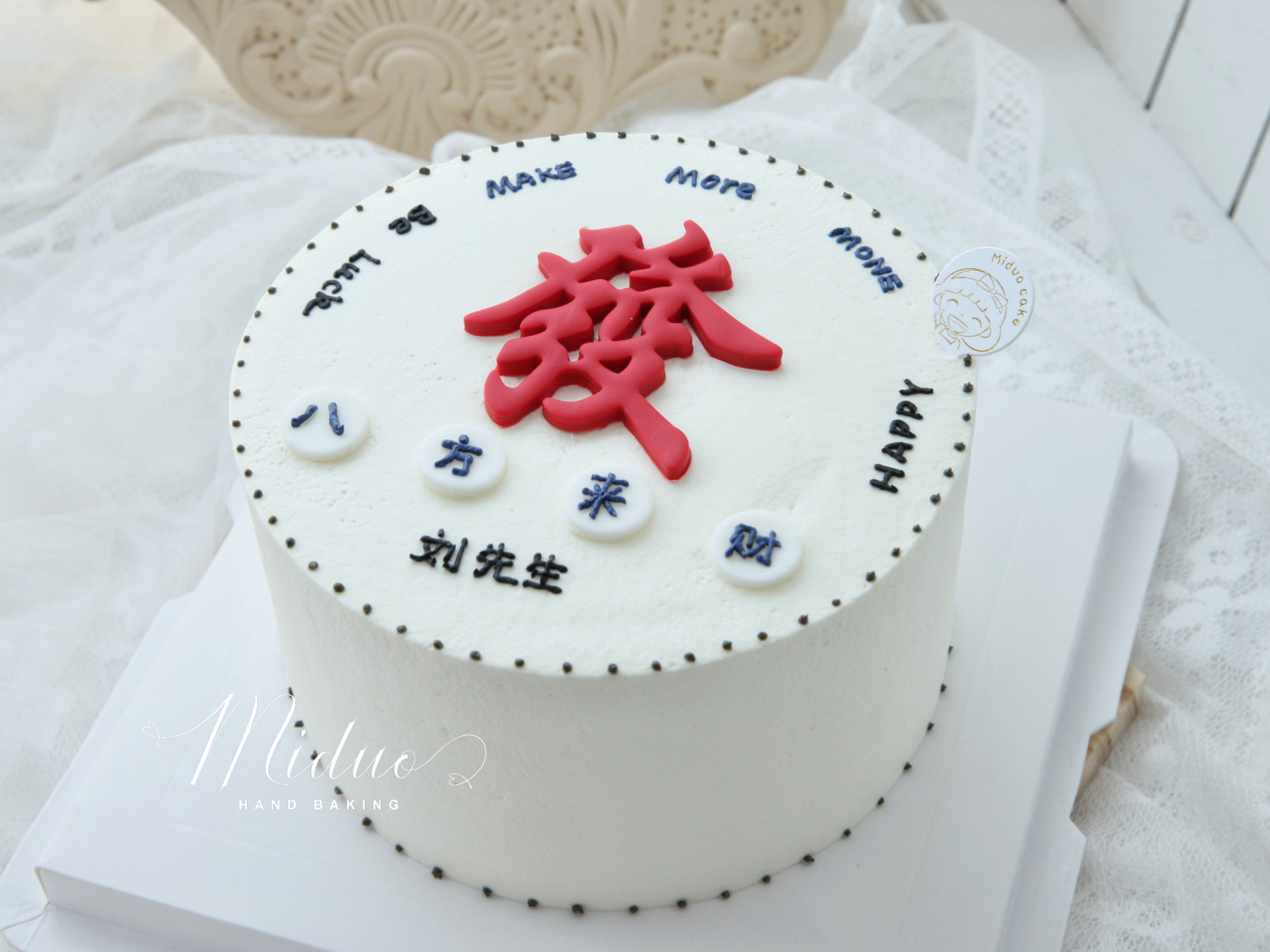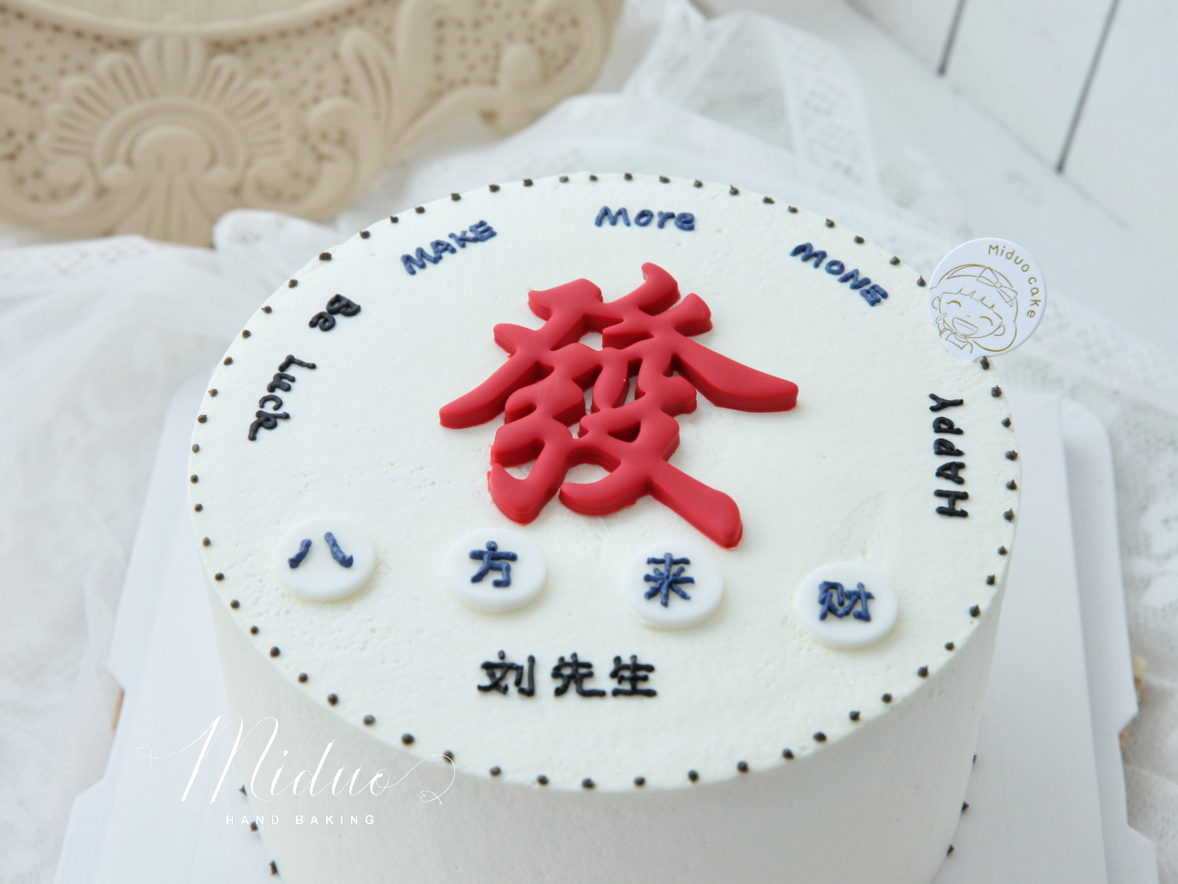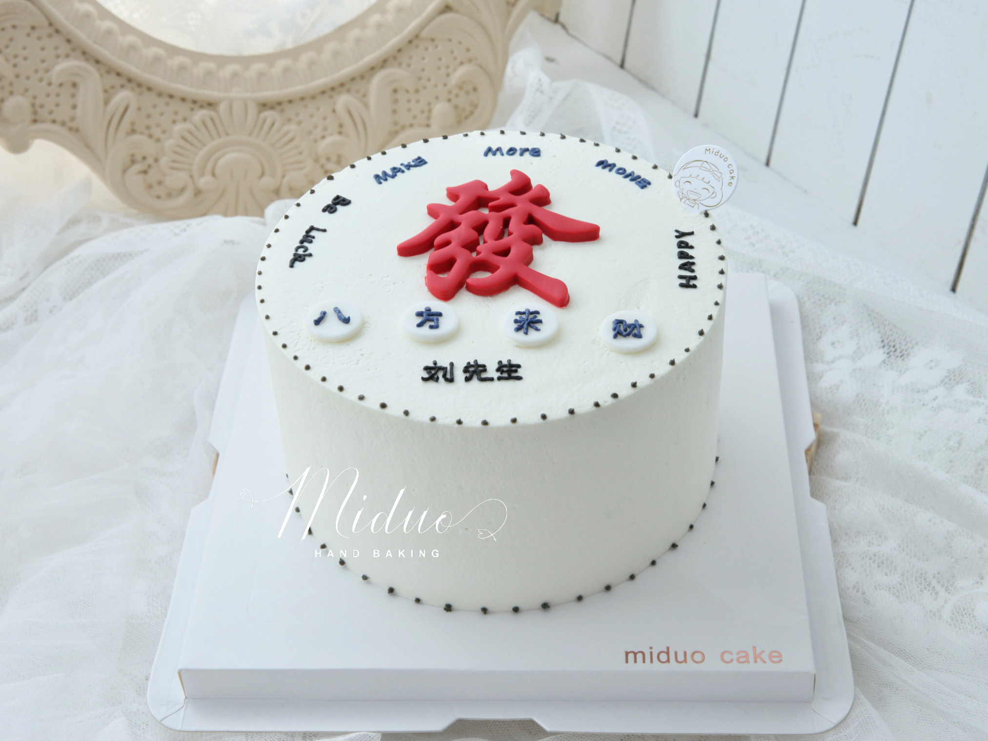 男士款 發 八方来财 父亲 老公 翻糖 简约蛋糕