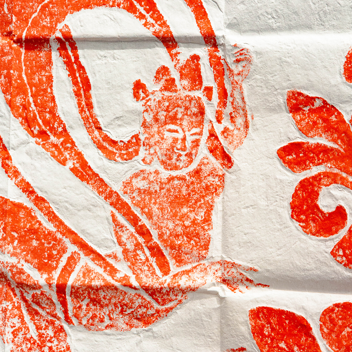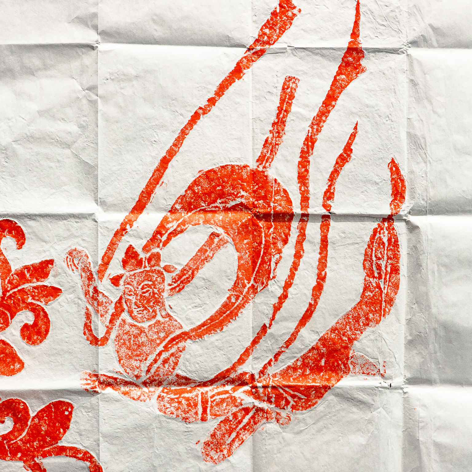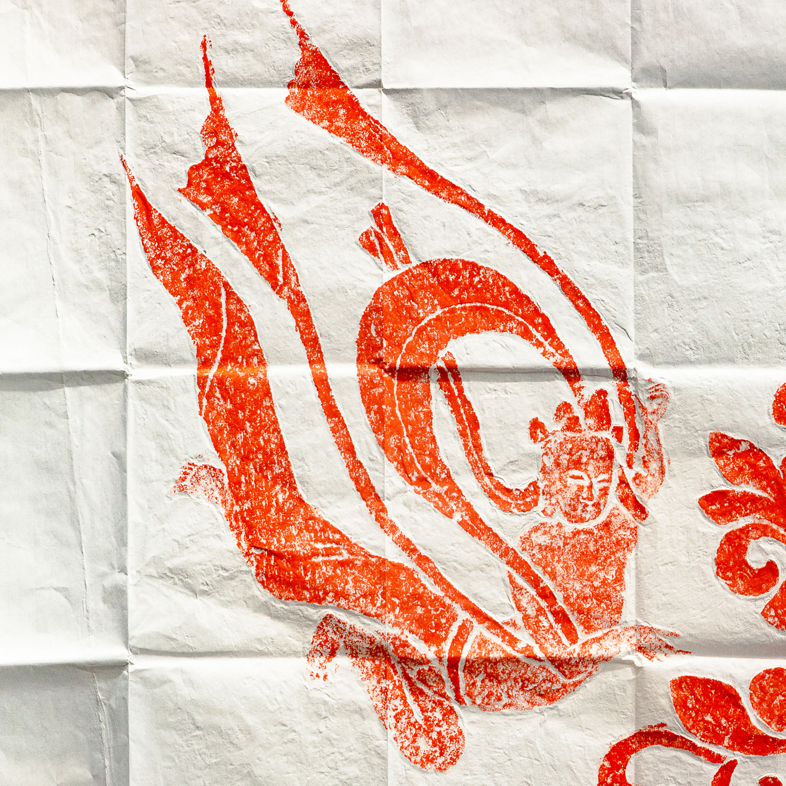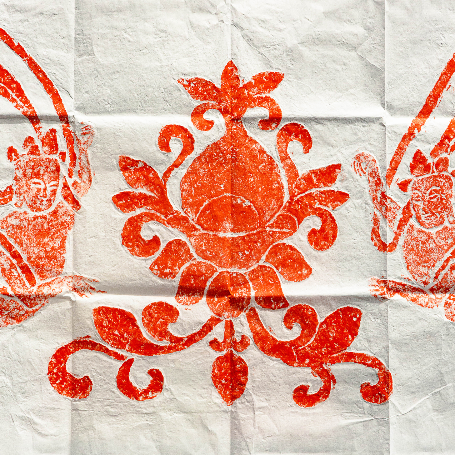安阳灵泉寺飞天拓片,原石原拓,原石刻于隋开皇九年,飞天造型姿态优美,开脸灵动,衣物飘逸,整张拓片尺寸为六尺整纸,为收藏之佳品。