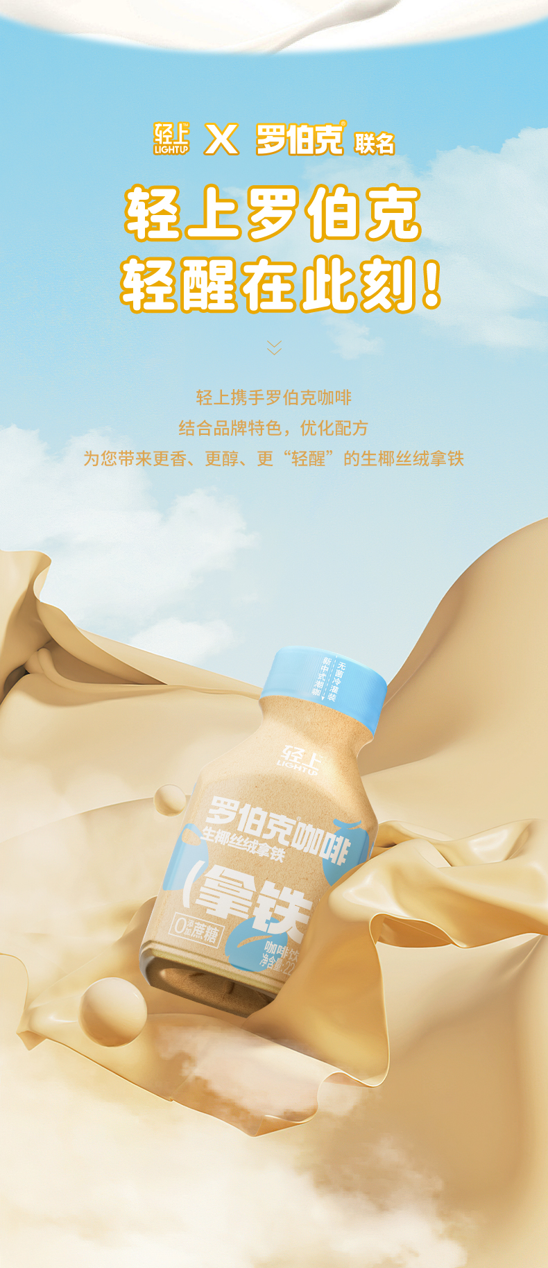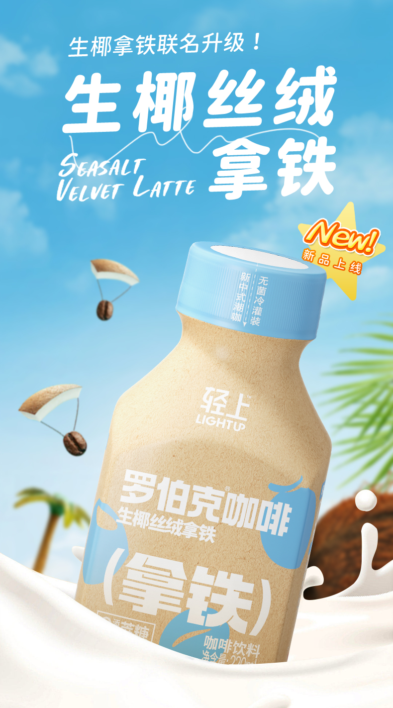 轻上罗伯克丝绒拿铁阿拉比卡咖啡豆220ml