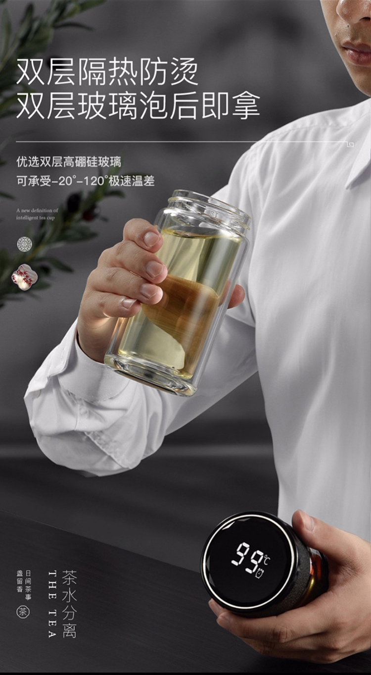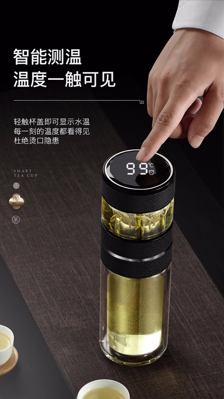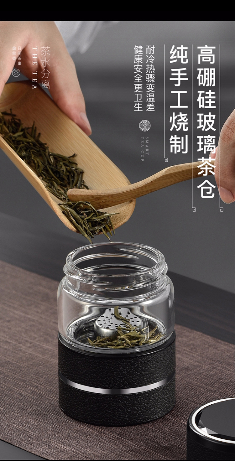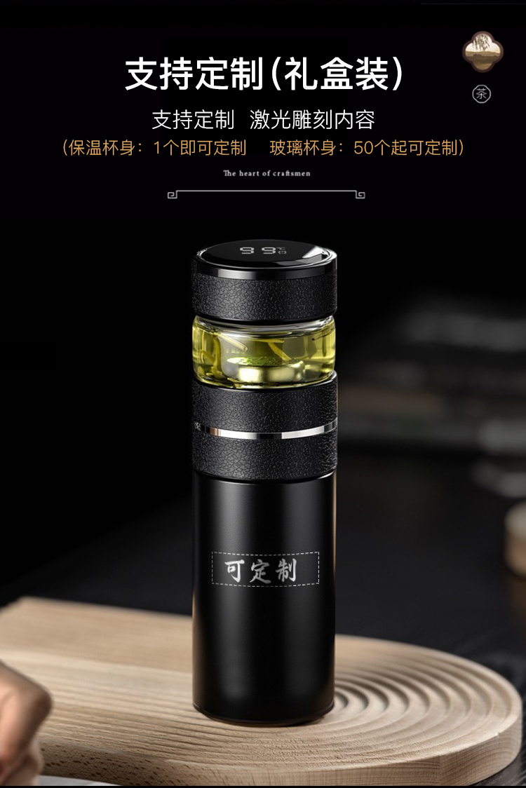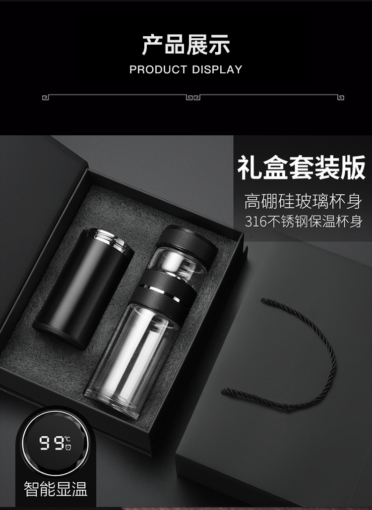 FXQ【可定制二代两用茶水分离杯套装】室内办公泡茶水杯 大容量触盖显温保温杯玻璃杯