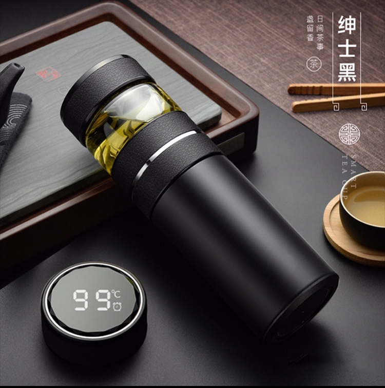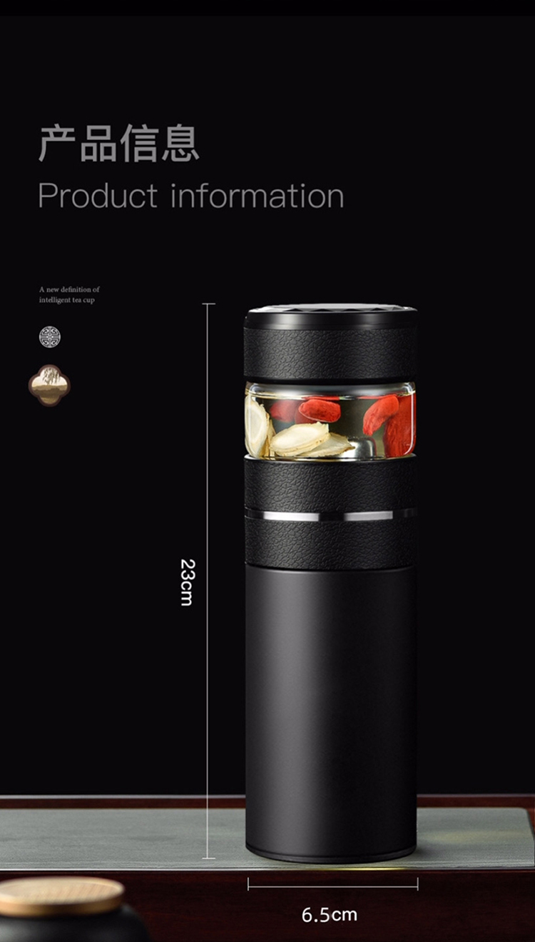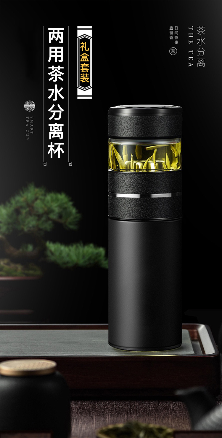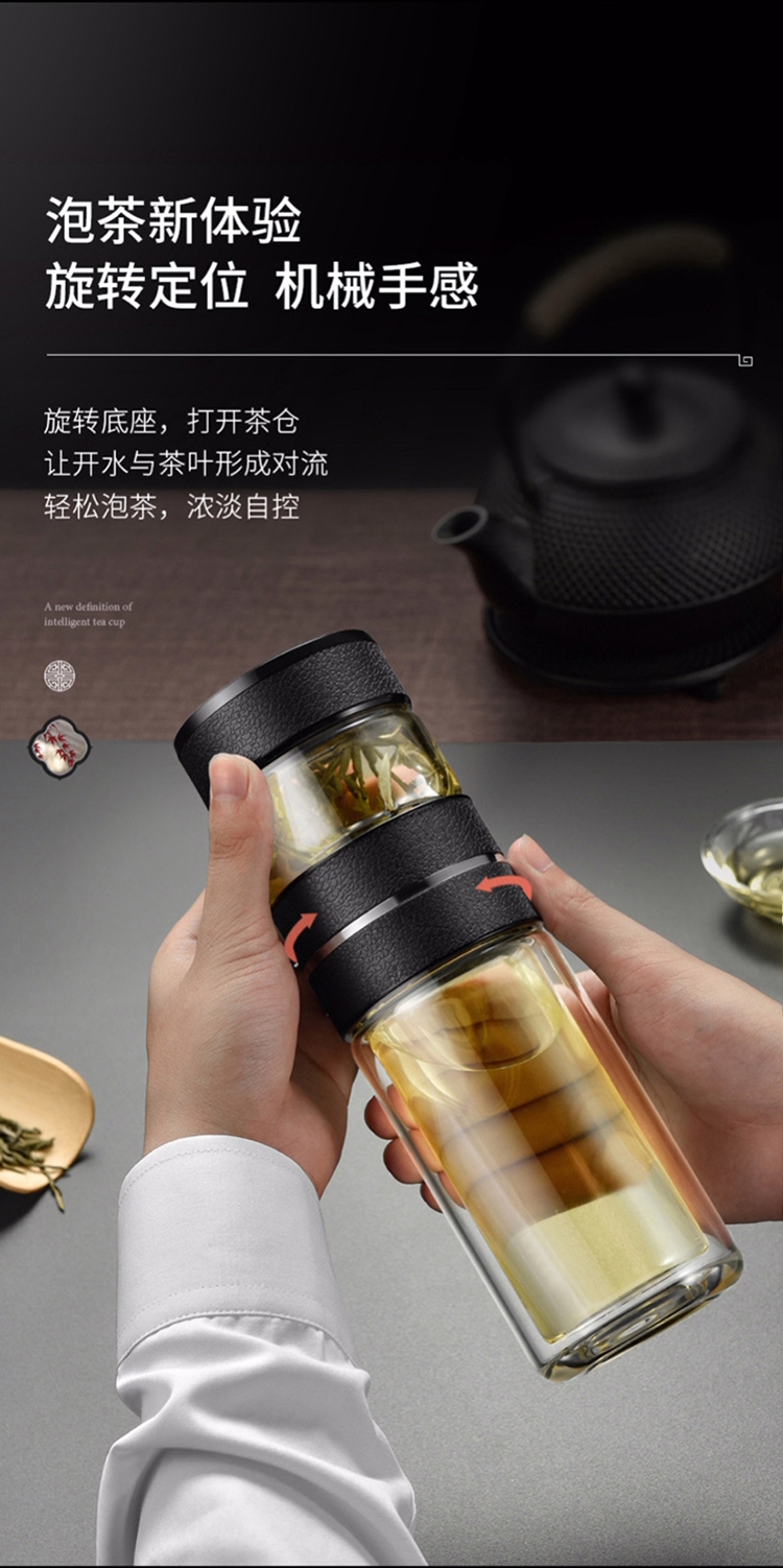 FXQ【可定制二代两用茶水分离杯套装】室内办公泡茶水杯 大容量触盖显温保温杯玻璃杯