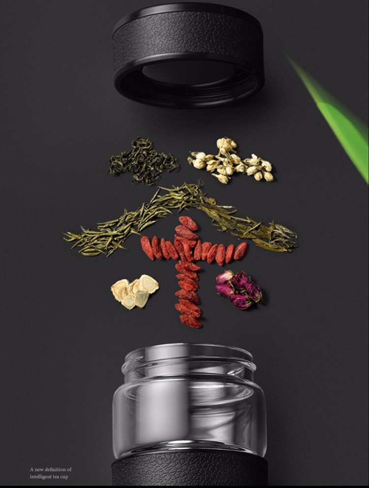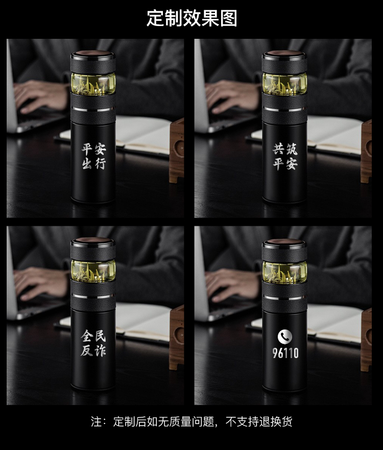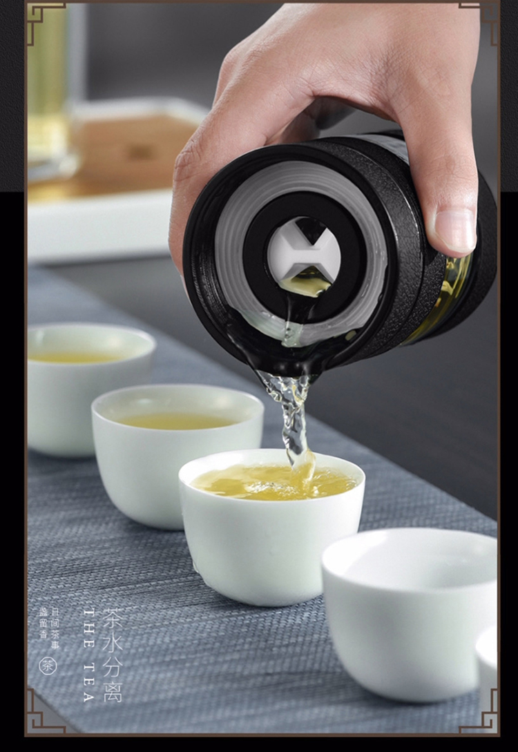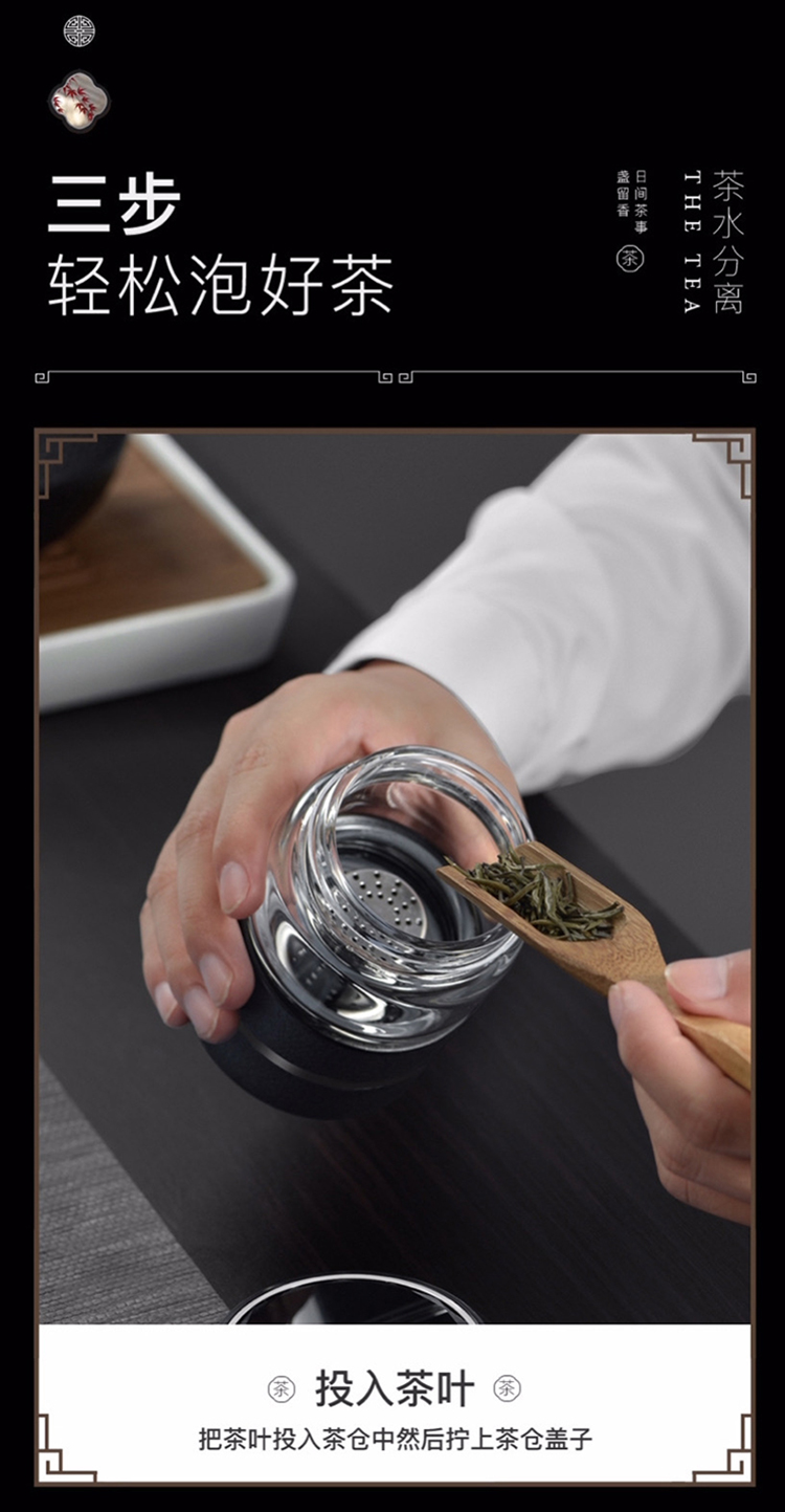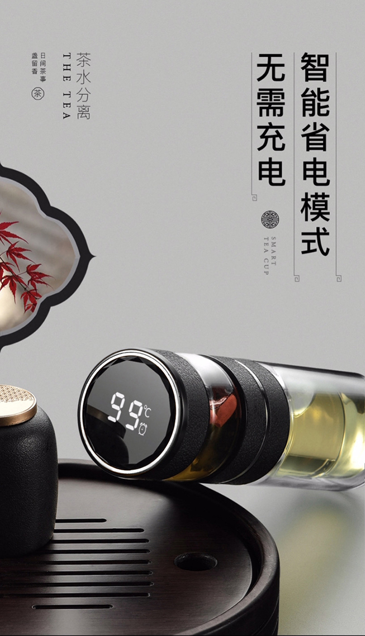 FXQ【可定制二代两用茶水分离杯套装】室内办公泡茶水杯 大容量触盖显温保温杯玻璃杯