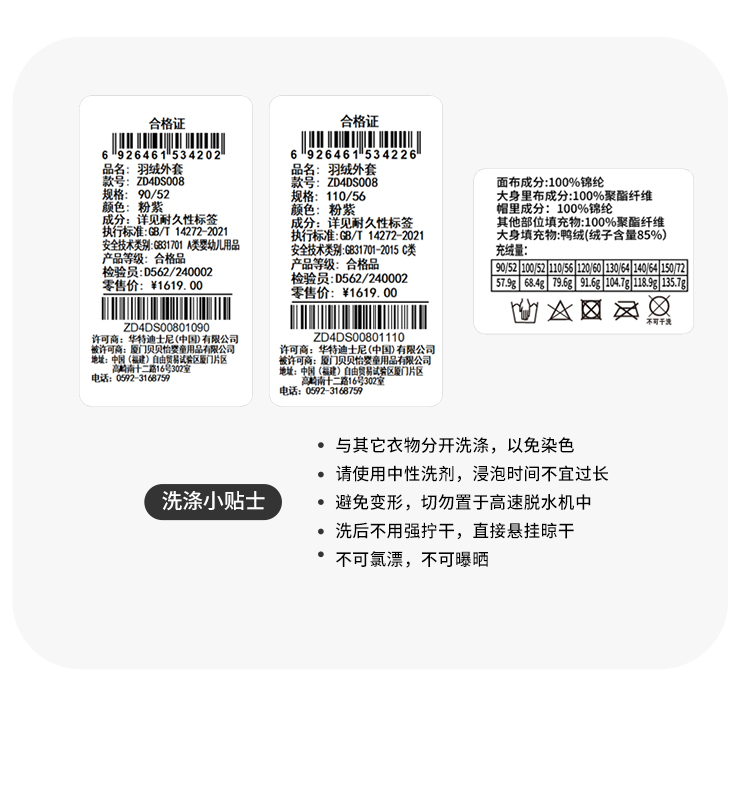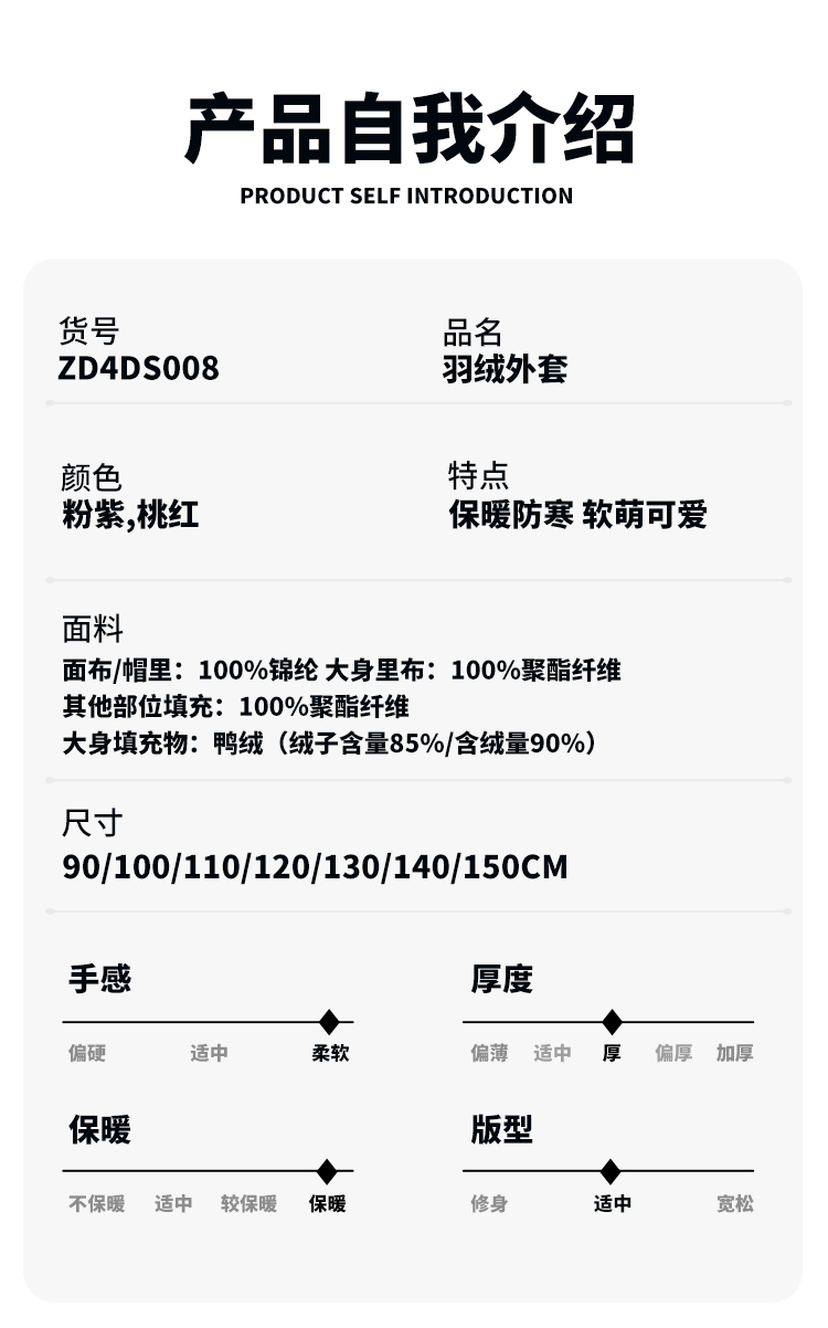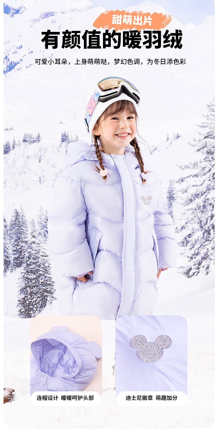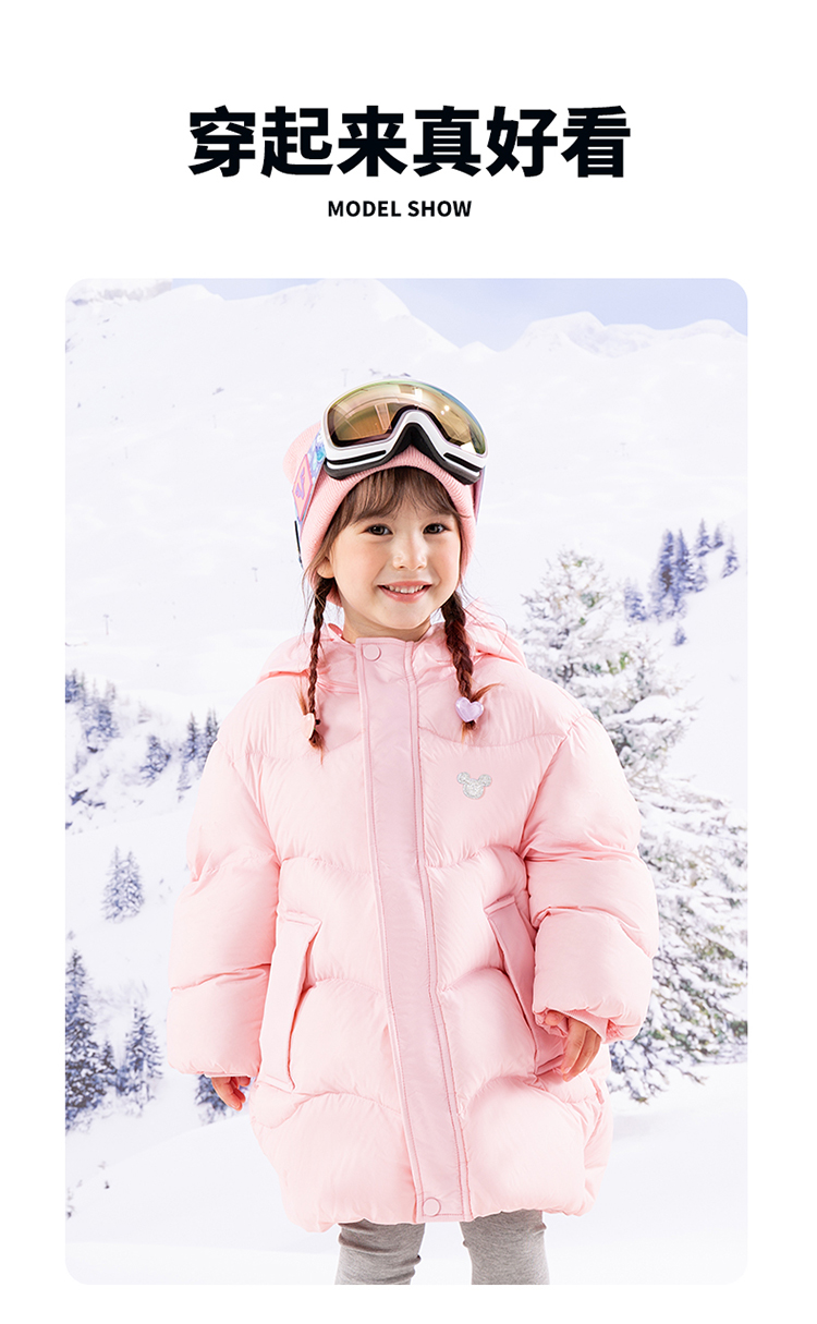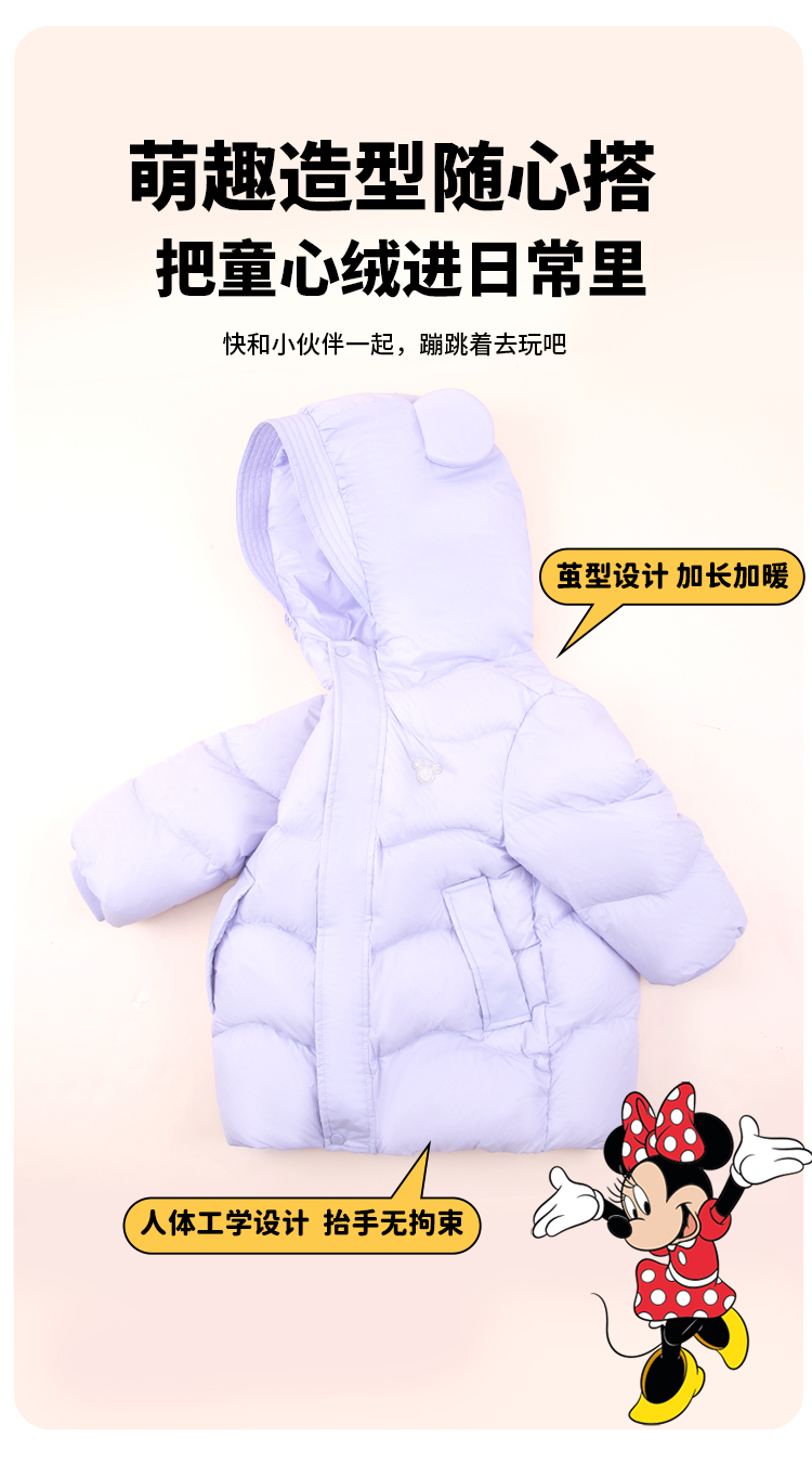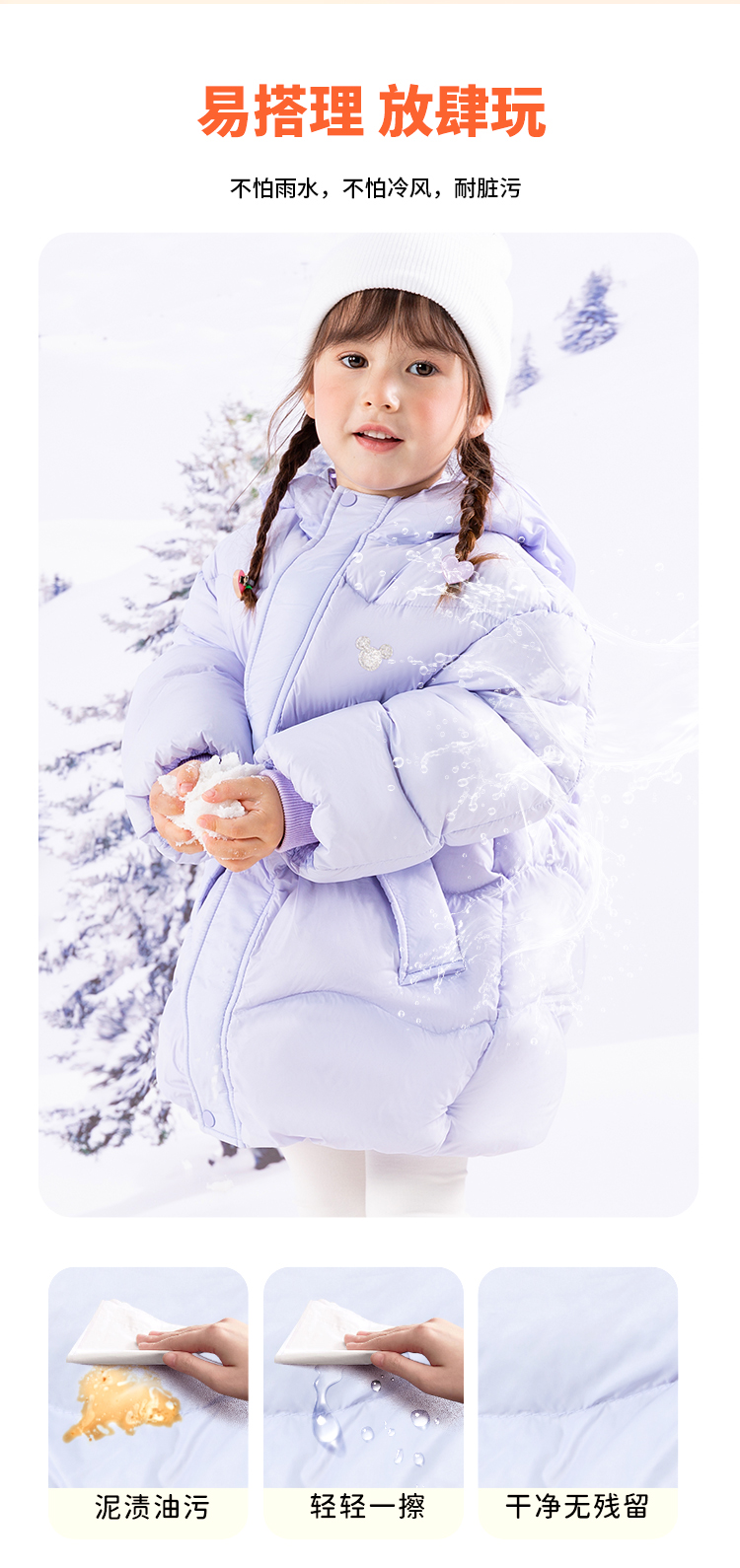 Disney/迪士尼女童时尚宝宝羽绒外套连帽防风加厚保暖秋冬羽绒服ZD4DS008