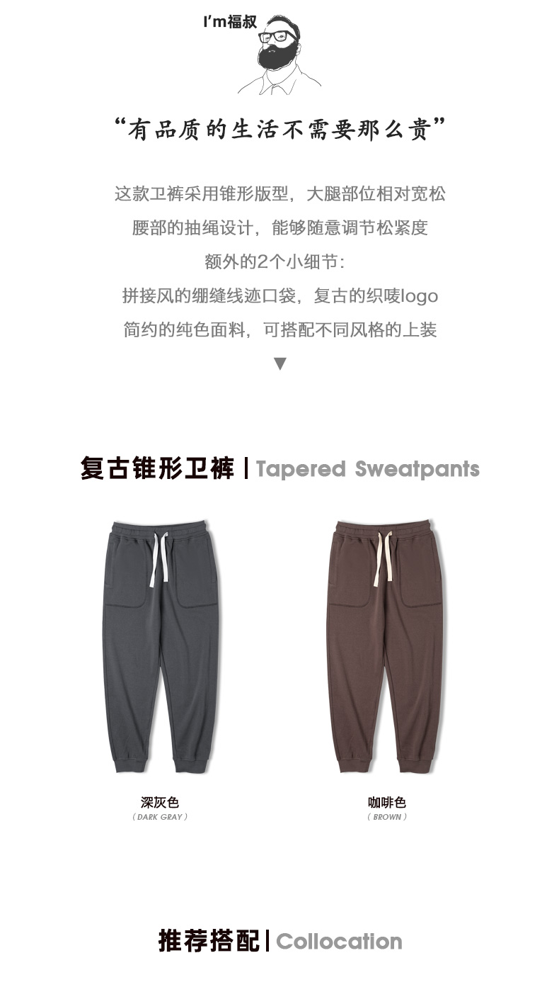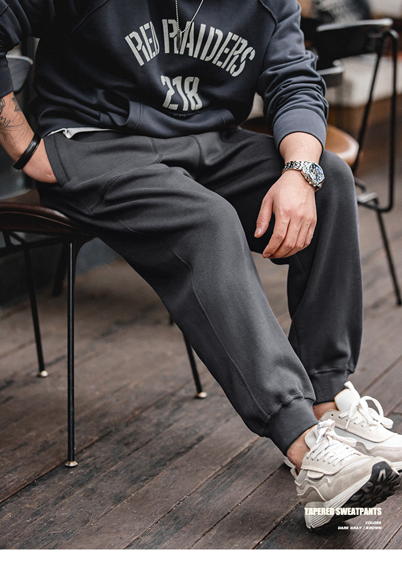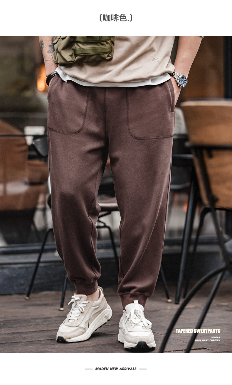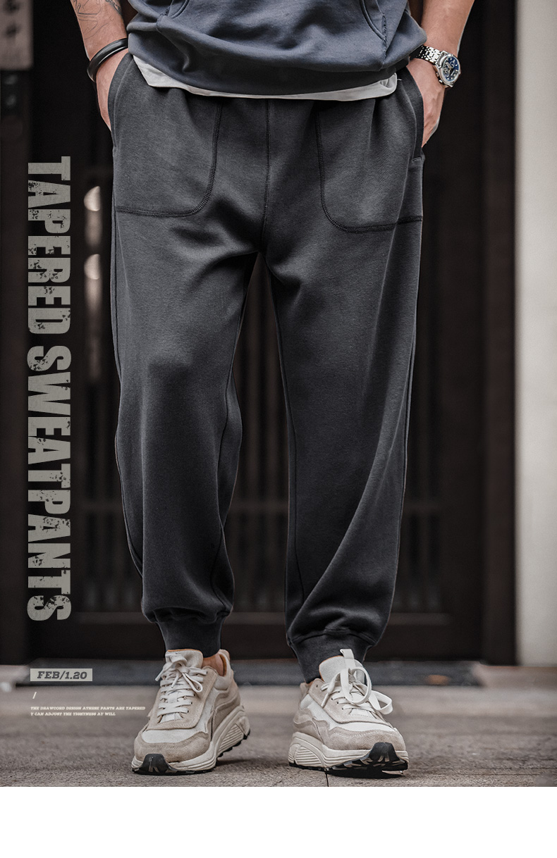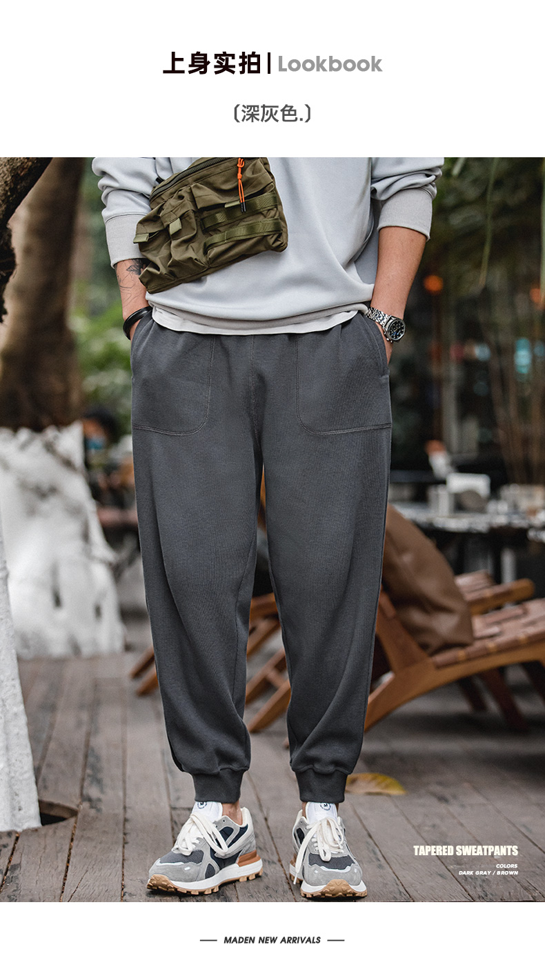 工装优选 美式抽绳针织束脚裤九分深灰色卫裤大口袋锥形运动裤子男