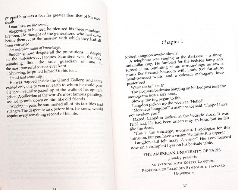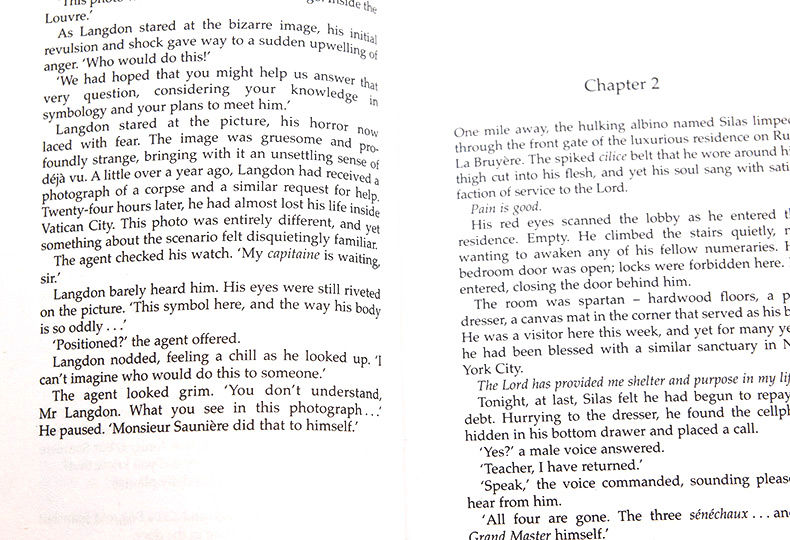 The Da Vinci Code follows symbologist Robert Langdon and cryptologist Sophie Neveu after a murder in the Louvre Museum in Paris, when they become involved in a battle between the Priory of Sion and Opus Dei over the possibility of Jesus Christ having been married to Mary Magdalene. The title of the novel refers, among other things, to the finding of the first murder victim in the Grand Gallery of the Louvre, naked and posed like Leonardo da Vinci’s famous drawing,the Vitruvian Man, with a cryptic message written beside his body and a pentagram drawn on his chest in his own blood.