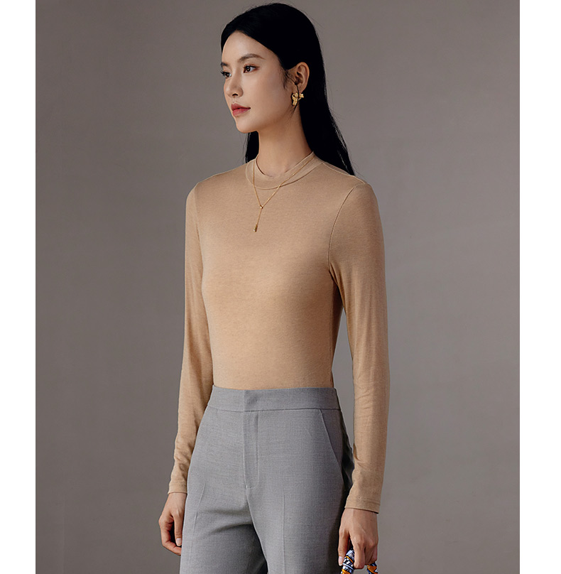 玳莎天丝羊毛基础打底衫女秋装新款内搭叠穿半高圆领针织衫 EC32304