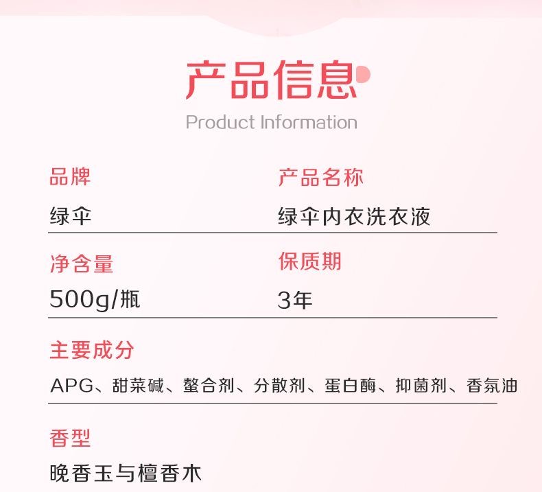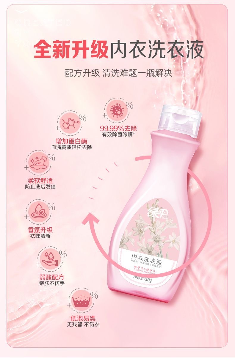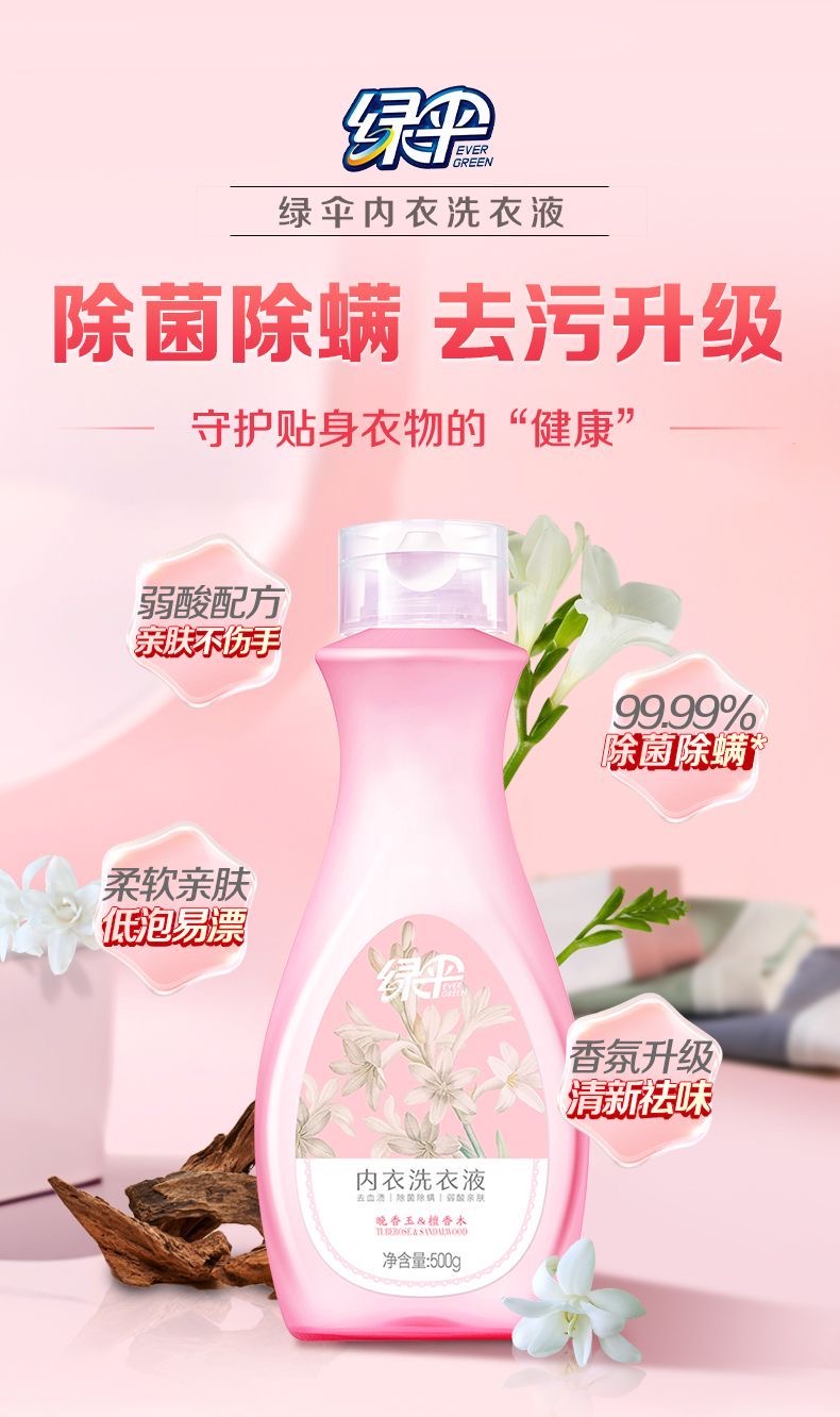 绿伞内衣洗衣液500g瓶装专业去污,洁净无残留