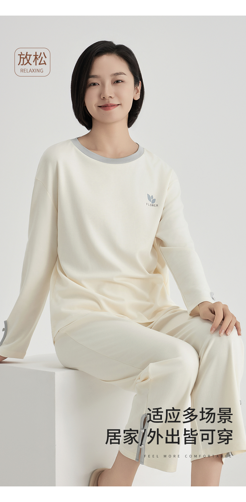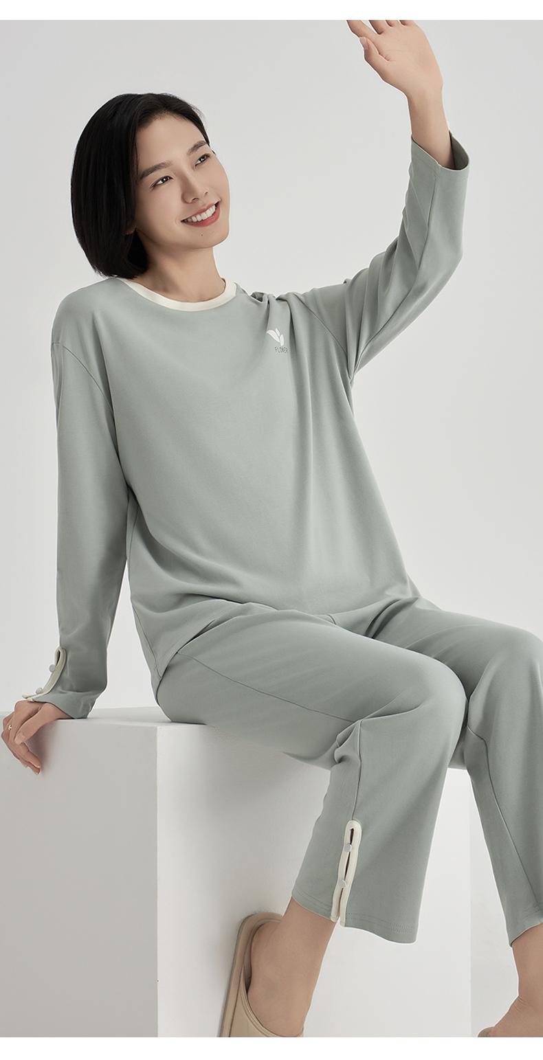 weyo秋冬家居服女舒感棉撞色包扣长袖套服50716 商品图1