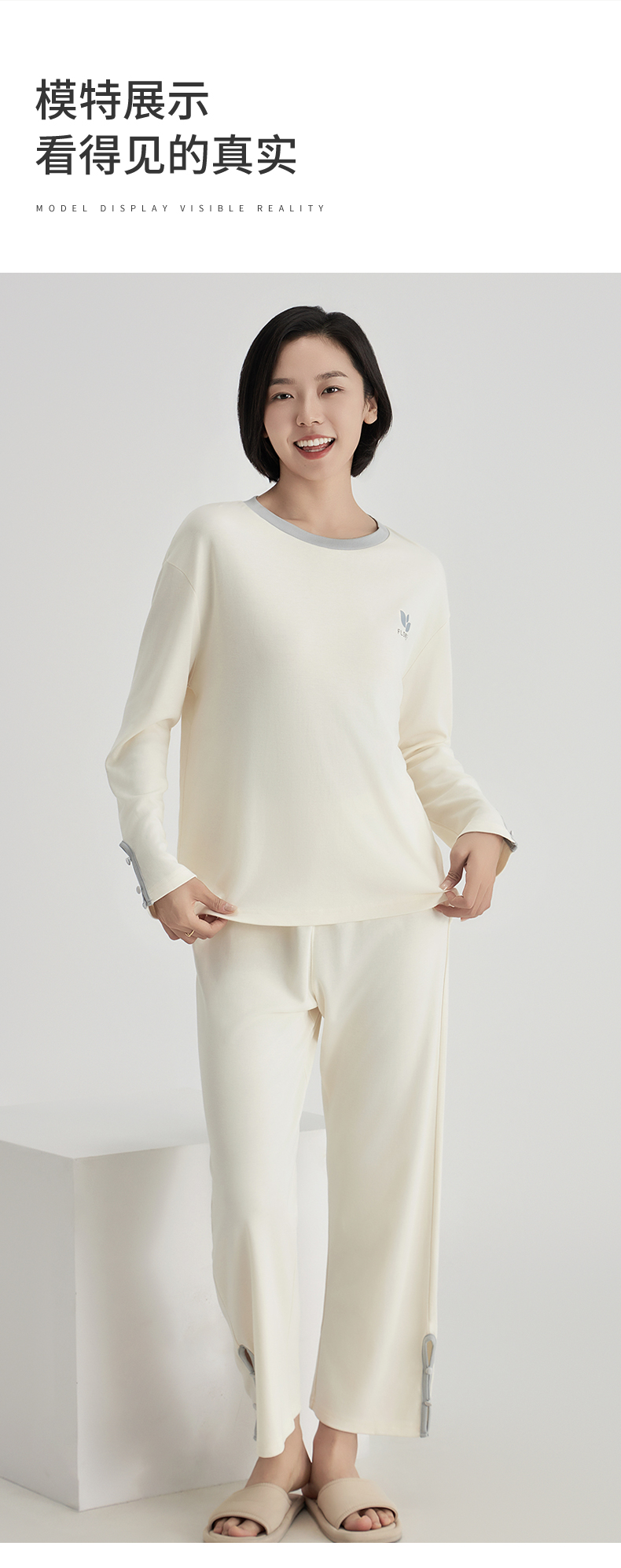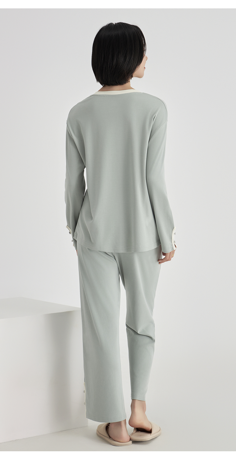 weyo秋冬家居服女舒感棉撞色包扣长袖套服50716 商品图3