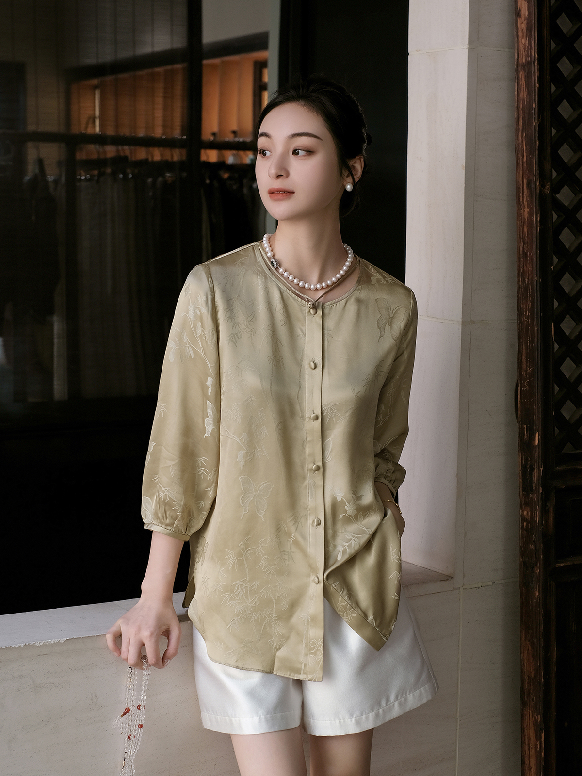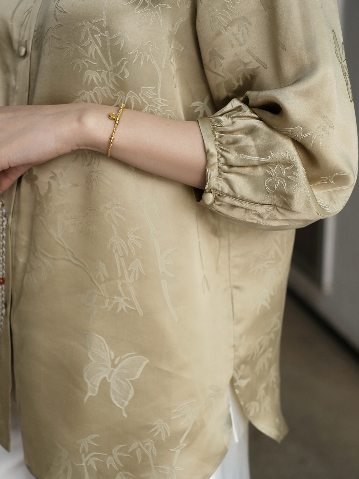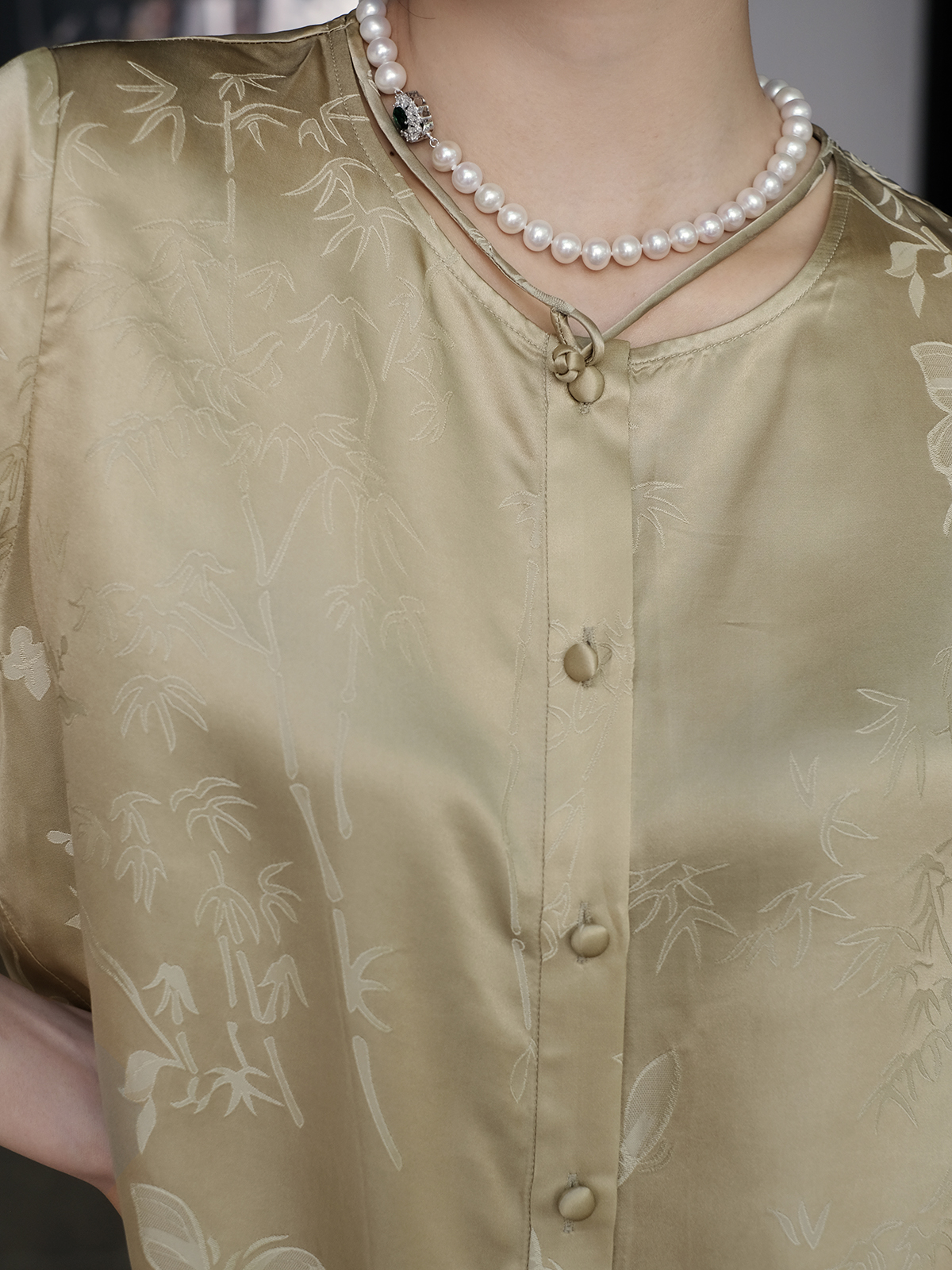 盛唐牡丹 |真丝提花梅兰竹菊偏襟上衣