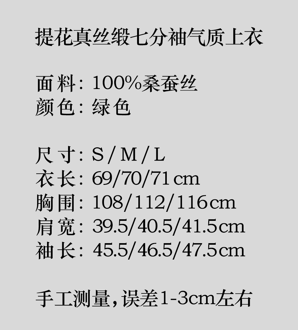 微瑕秒杀 |盛唐婧 |提花真丝缎七分袖气质上衣-绿色[特价品](特殊商品不退不换)