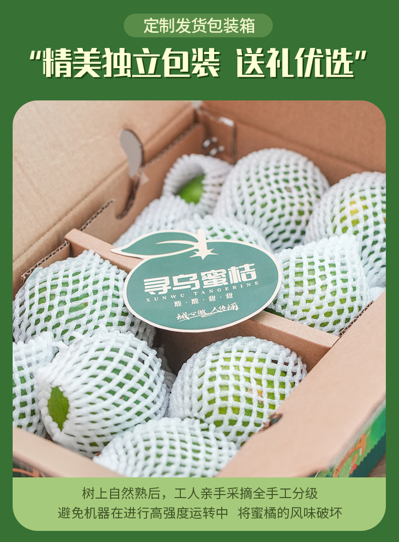 | 【品名】江西寻乌蜜桔 【规格】3-4.5斤装 【储存方式】请置于阴凉干燥、通风透气处 【产地】江西赣州寻乌 【快递】顺丰/京东 【不发货区域】新疆、西藏、港澳台不发 【补邮费地区】甘肃、青海、内蒙古、宁夏、黑龙江,吉林+5元/件 【发货时效】48小时,节假日顺延 |