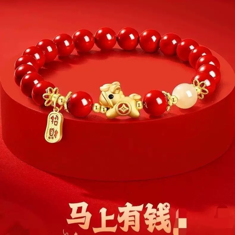 【秒杀❗️29.9抢4件🔥新年朱砂色手串】迎春接福,好运连连,带福回家!马上有钱手链女轻奢马年新年送女友礼物套装