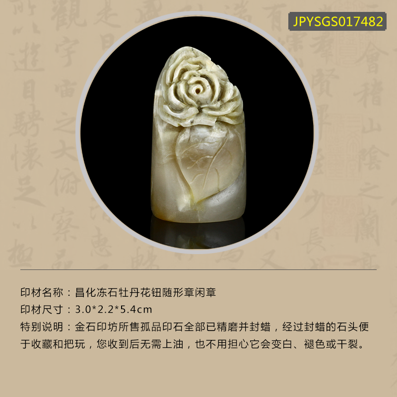 孤品017482昌化冻石牡丹花钮随形章闲章-3.0*2.2*5.4cm