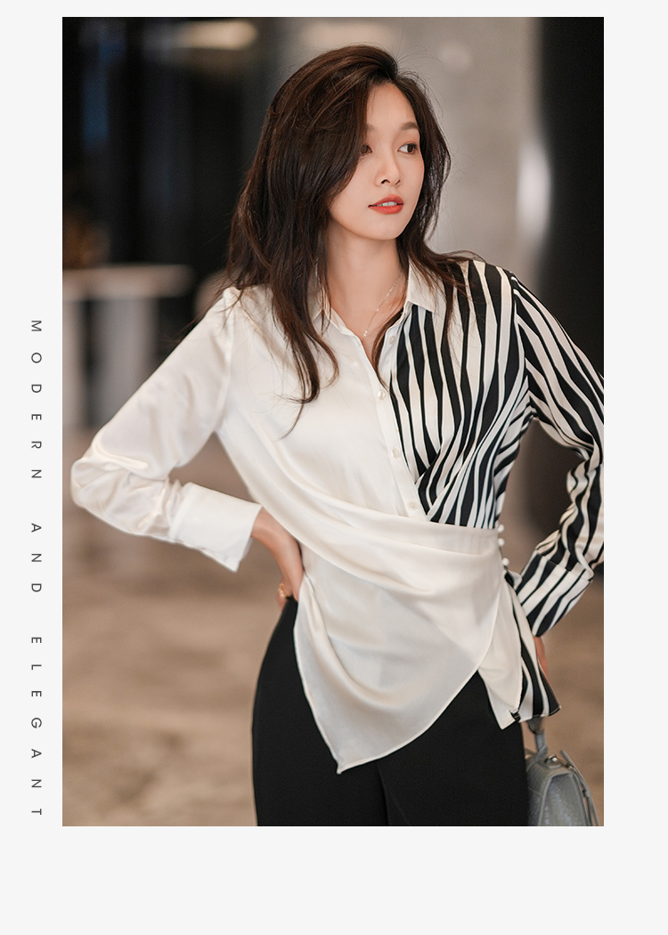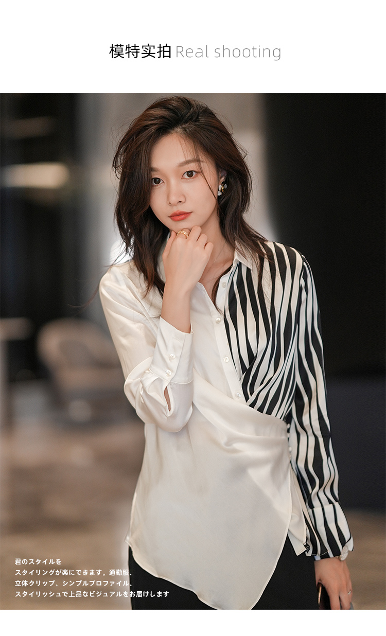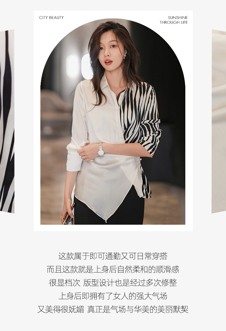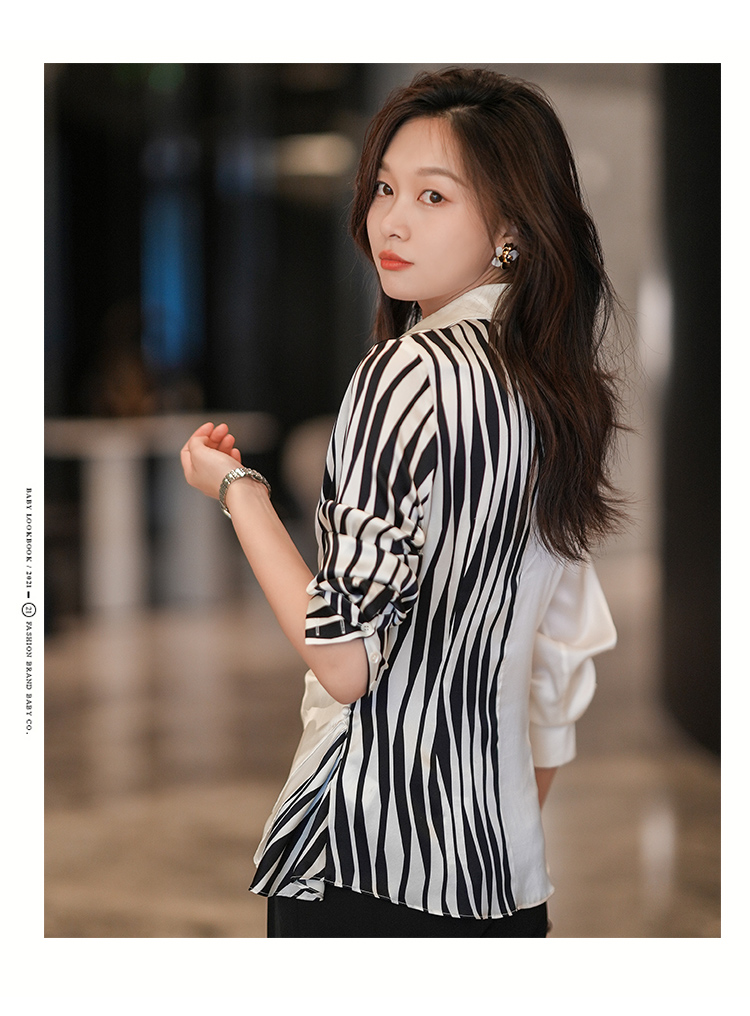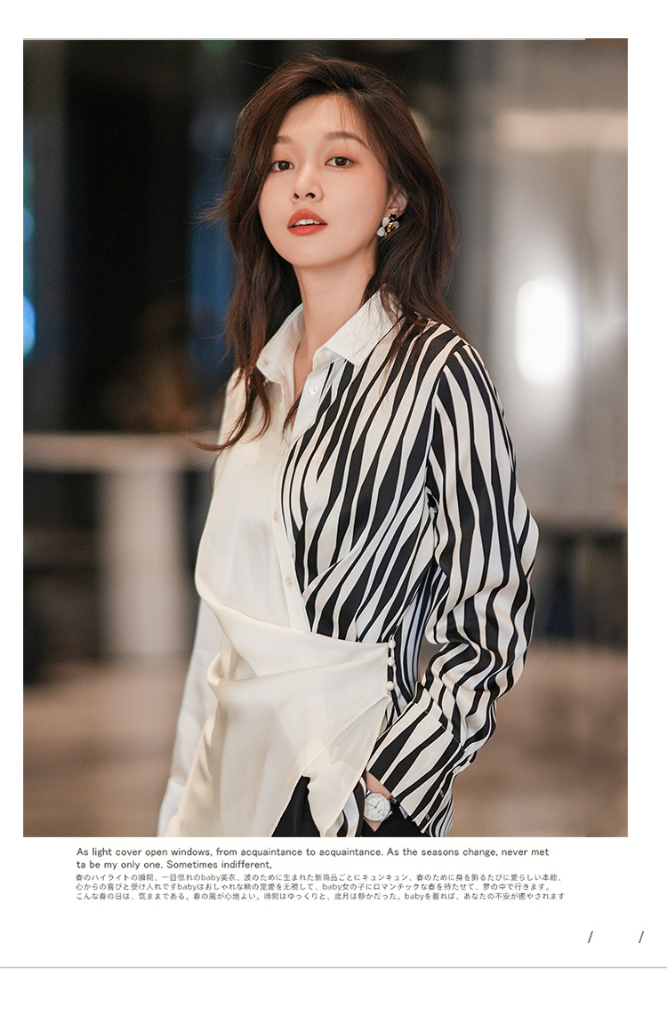 法式白色斑马纹衬衫女夏季薄款设计感长袖衬衣2022新款上衣