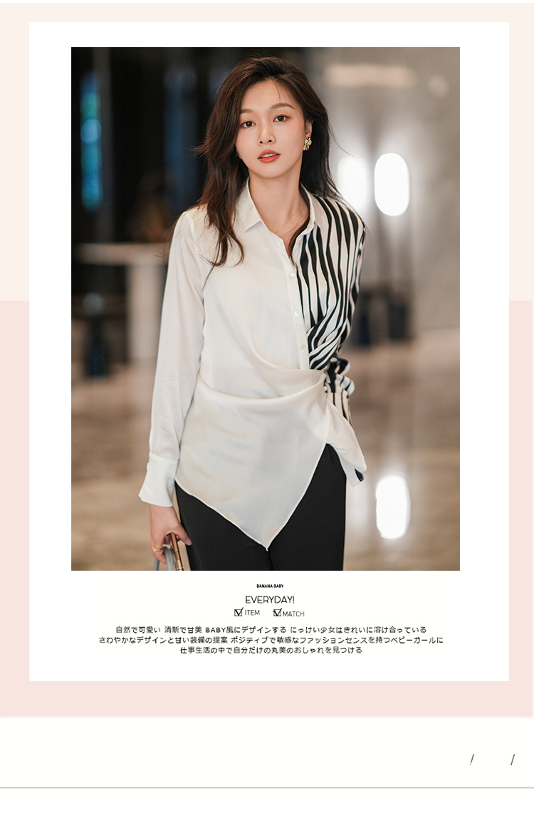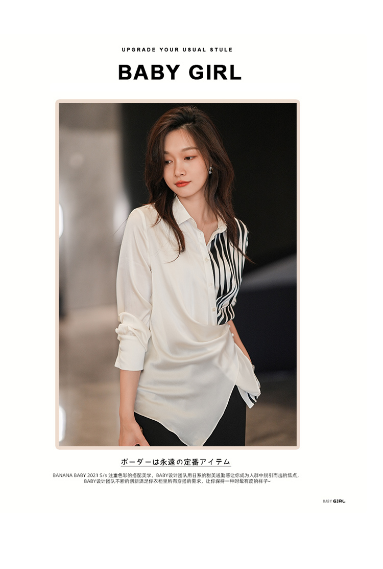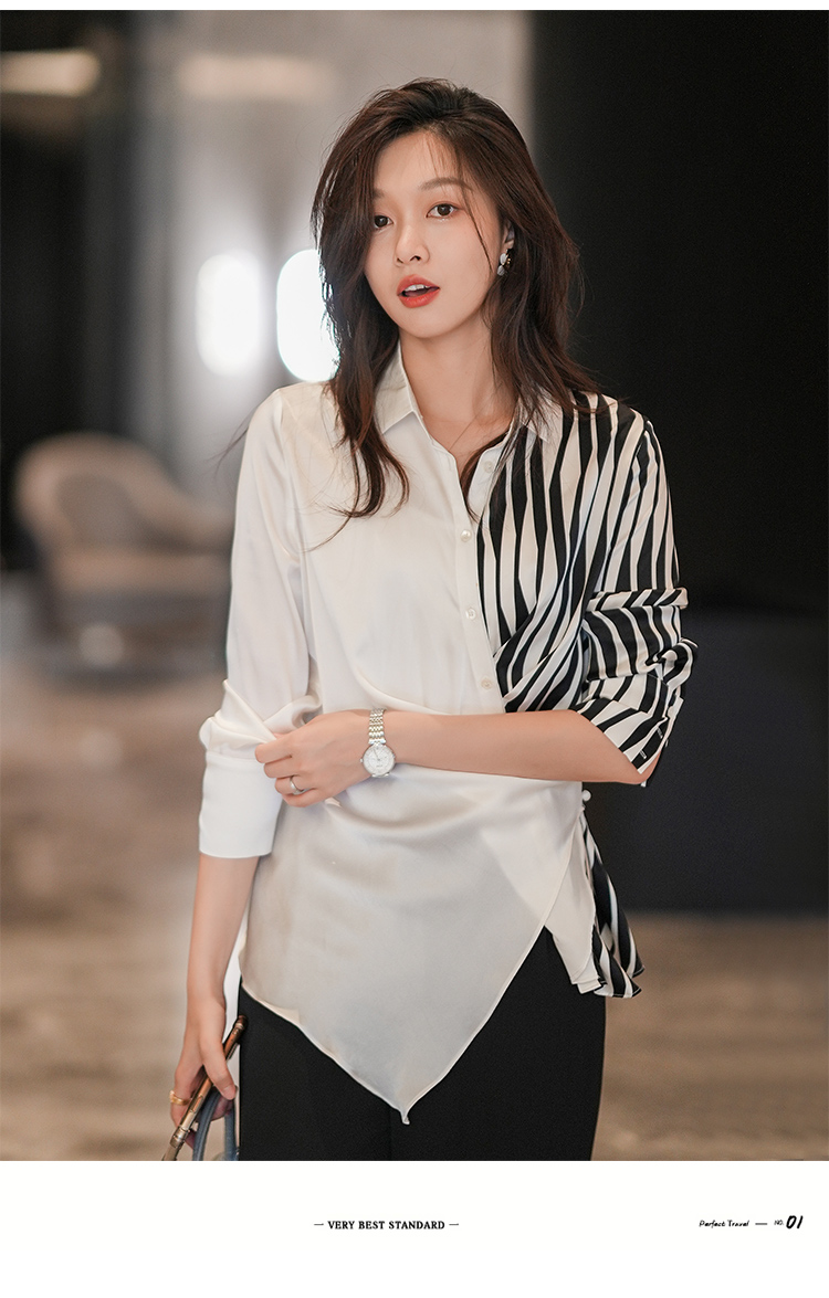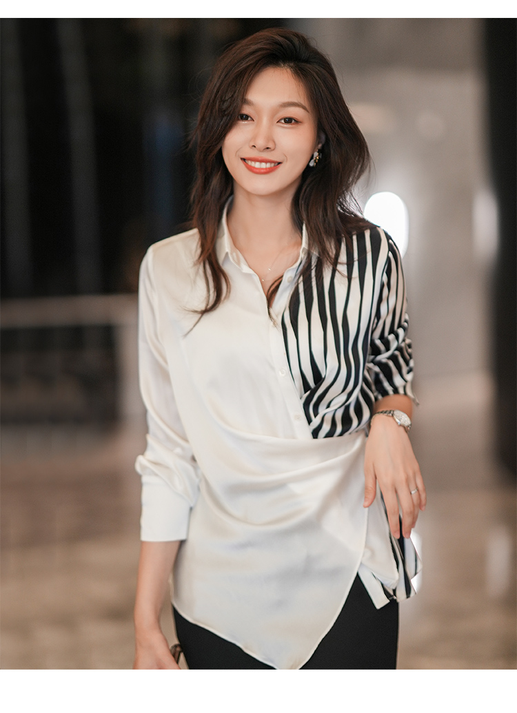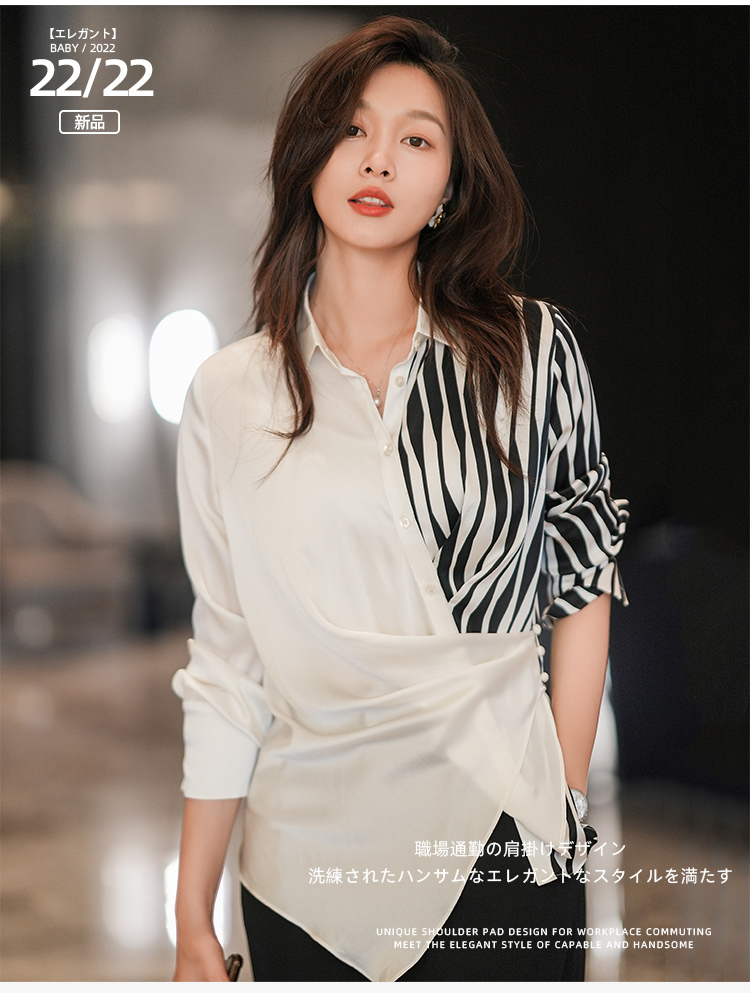 法式白色斑马纹衬衫女夏季薄款设计感长袖衬衣2022新款上衣