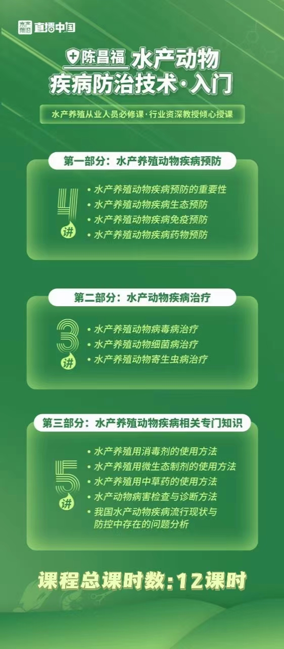 陈昌福老师主讲:水产动物疾病防治技术入门线上课程