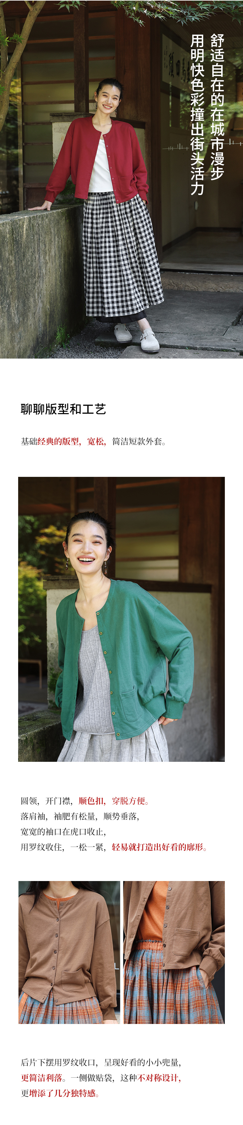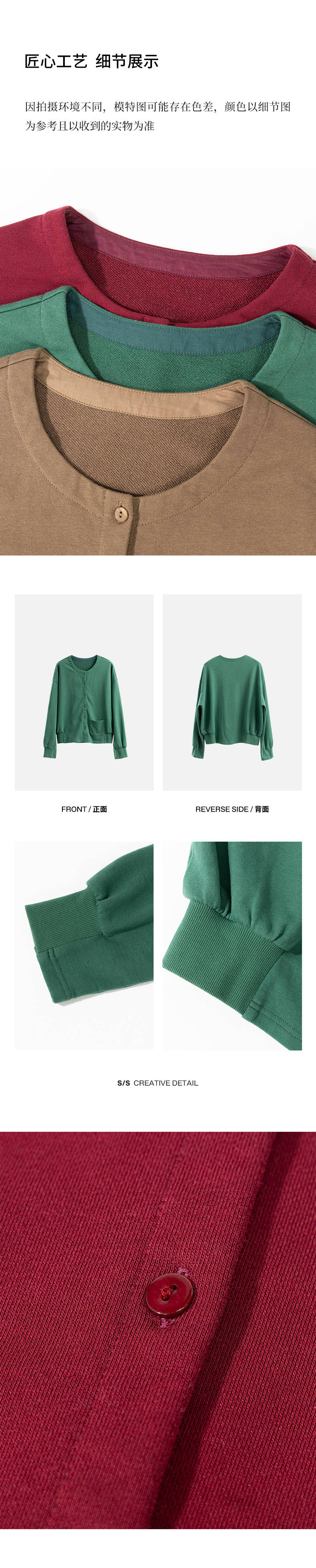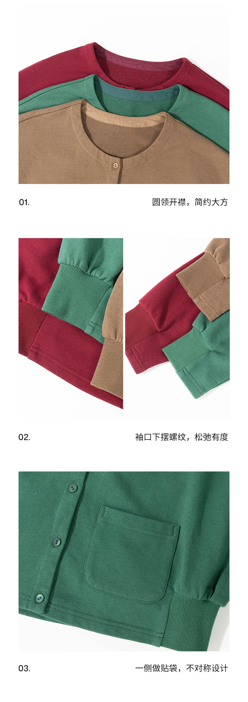 绽放旅行女装505朵/全棉毛圈布圆领开襟落肩长袖短款开襟卫衣早秋