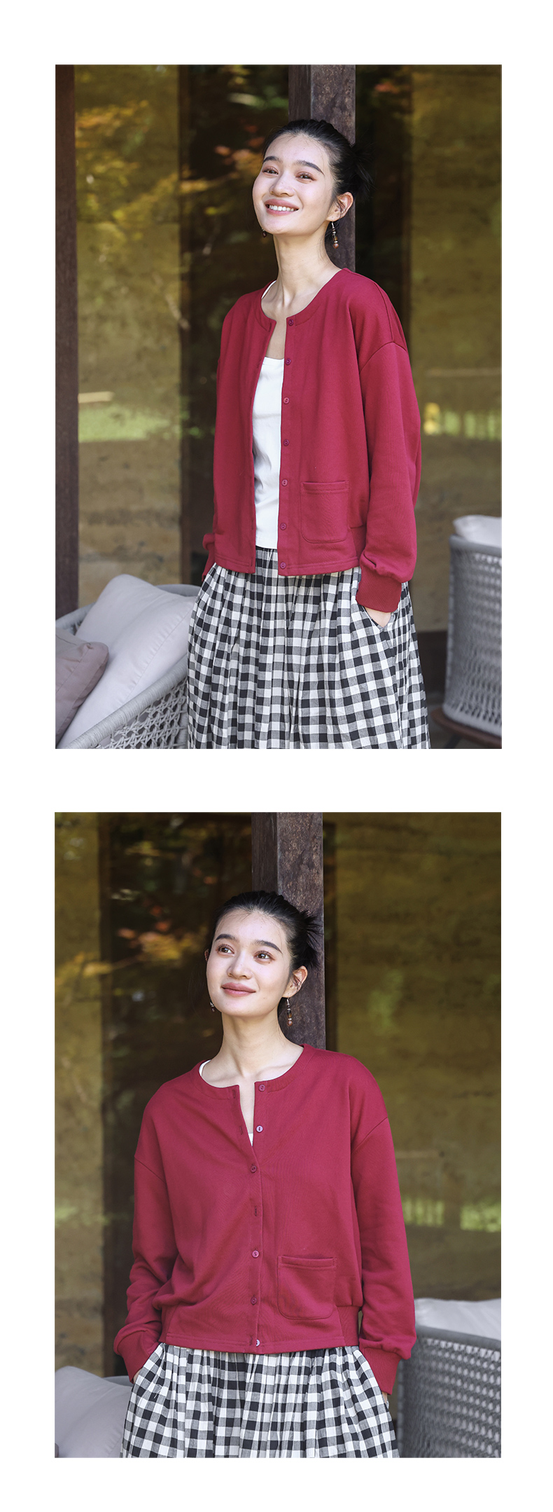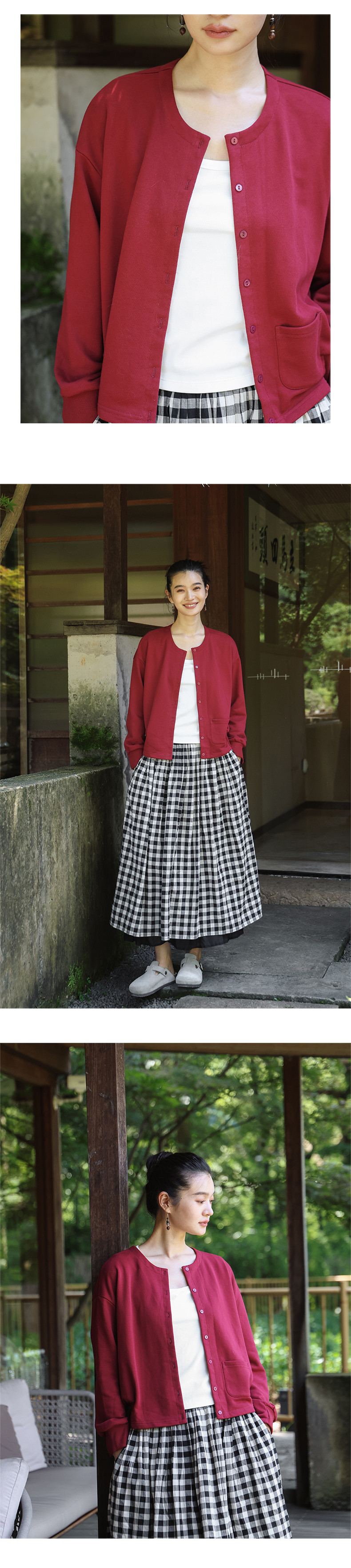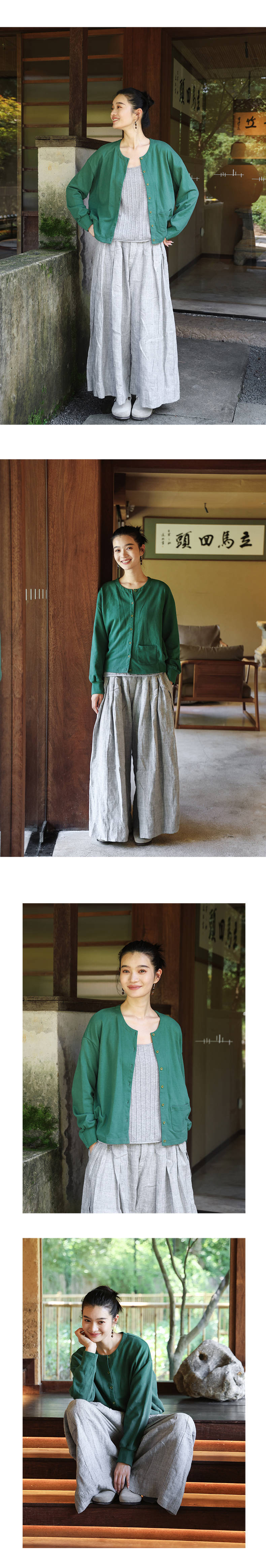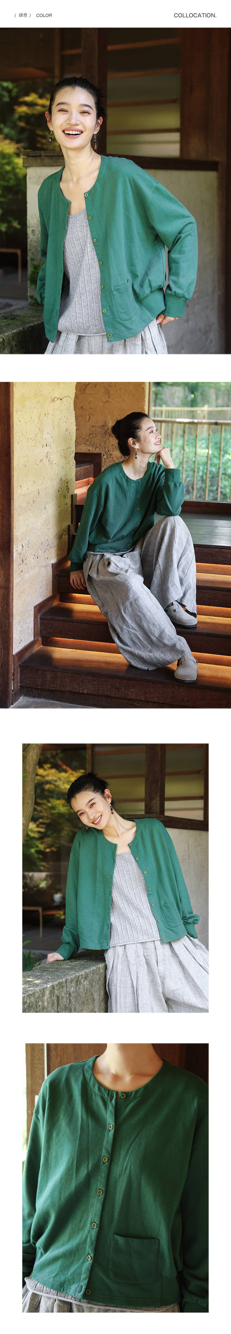 绽放旅行女装505朵/全棉毛圈布圆领开襟落肩长袖短款开襟卫衣早秋