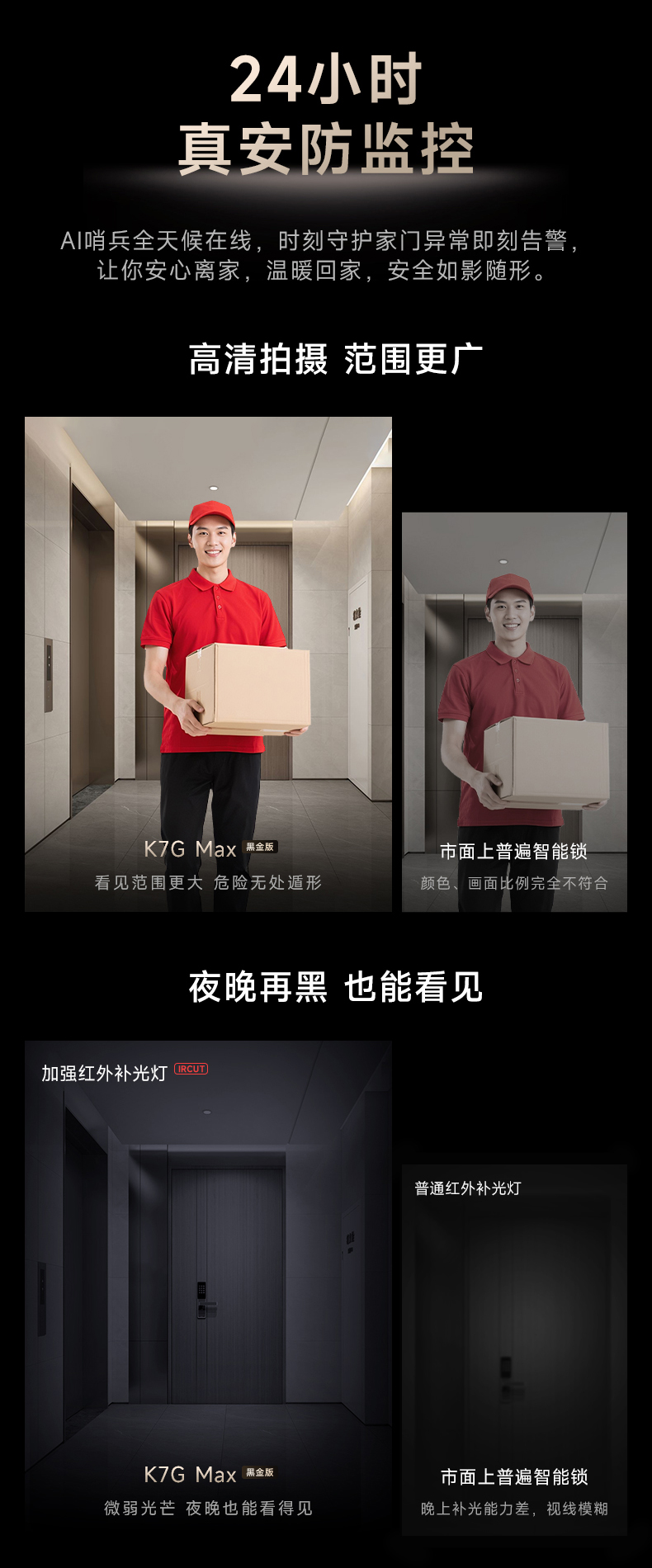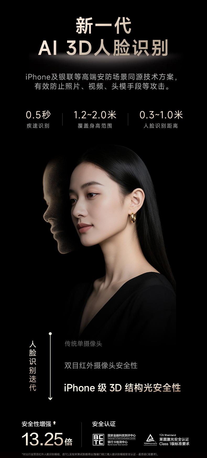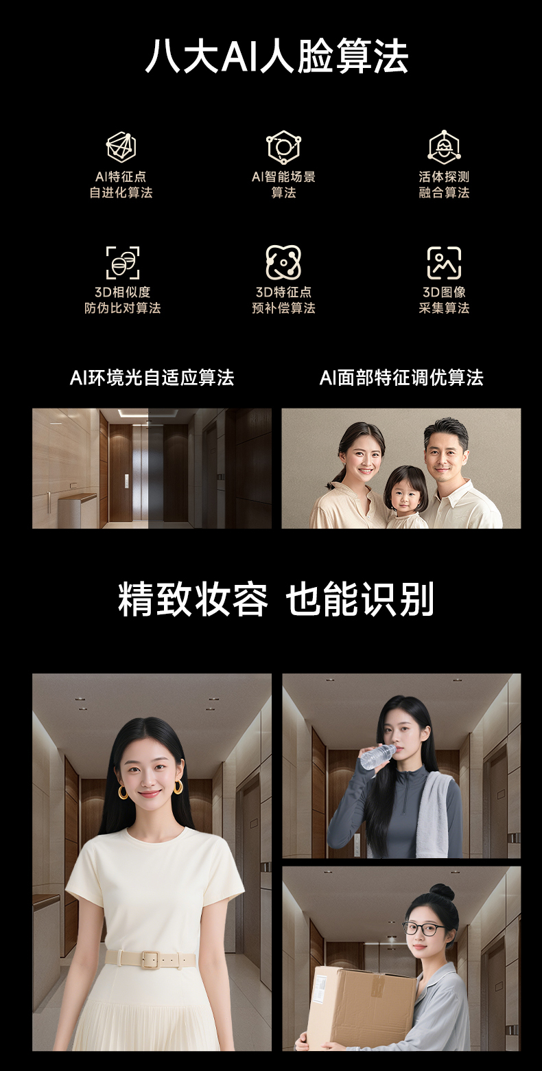 TCL 3D人脸识别猫眼锁指纹锁智能锁智能门锁电子锁K7G Max(黑金版)