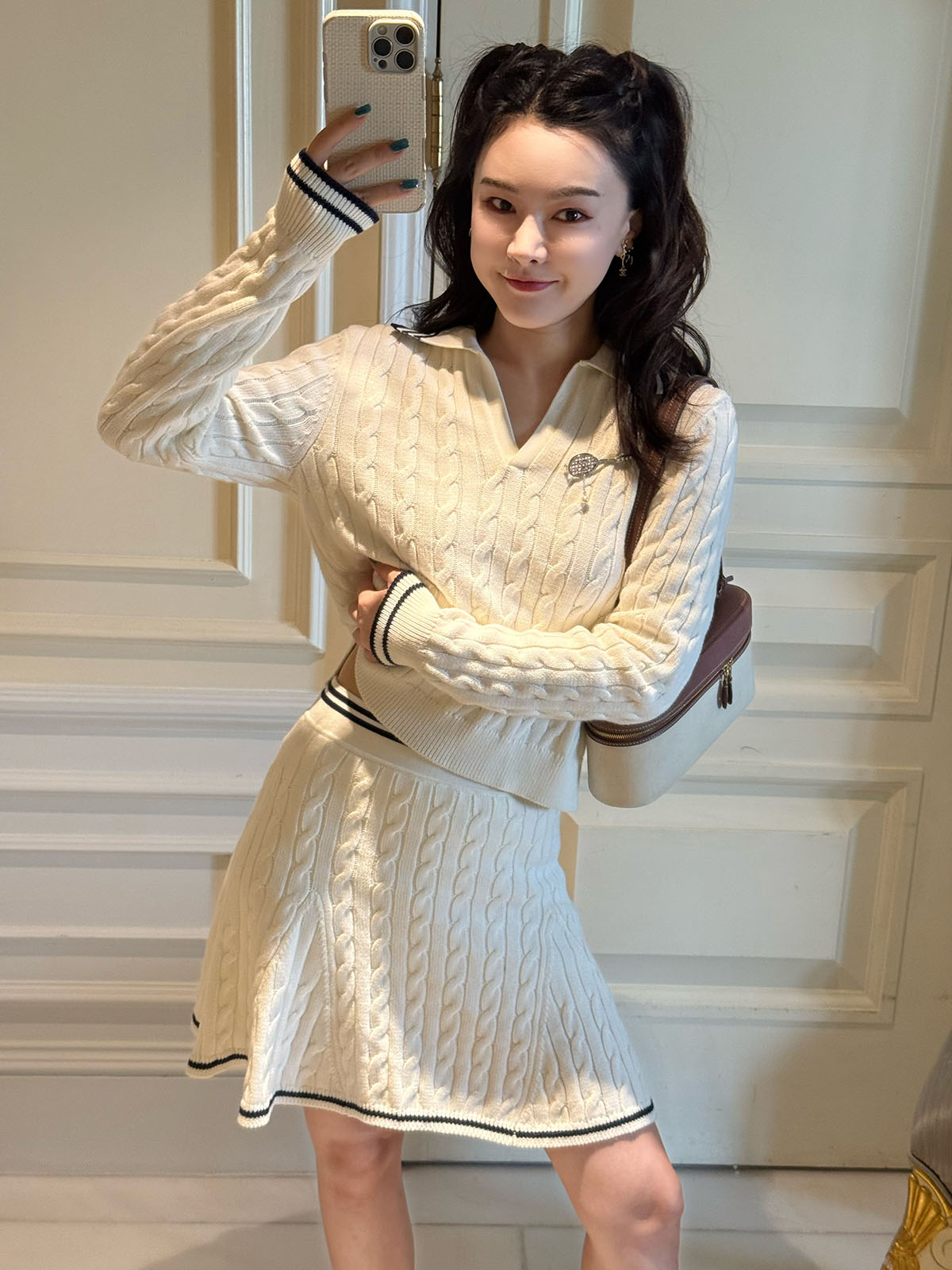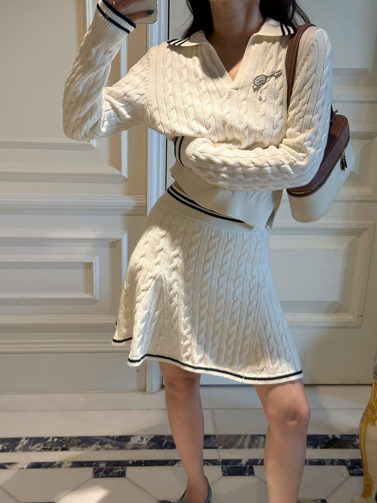 DUO智仙生 芭比温网衣橱 网球风经典麻花毛衣配短裙