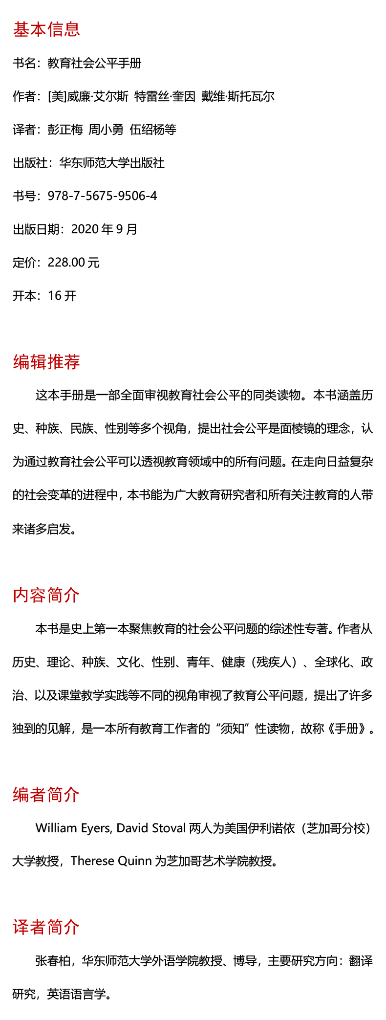 教育社会公平手册 上下册 教育公平研究译丛 教师教育 学校变革 社会公平政治