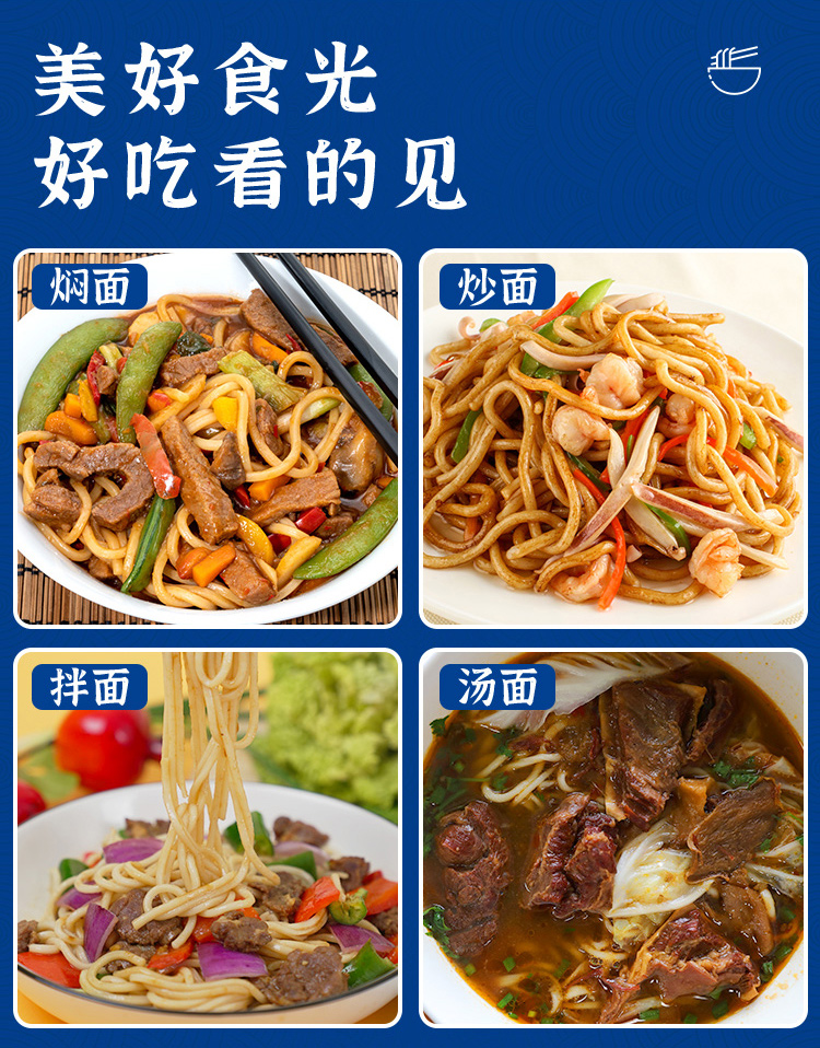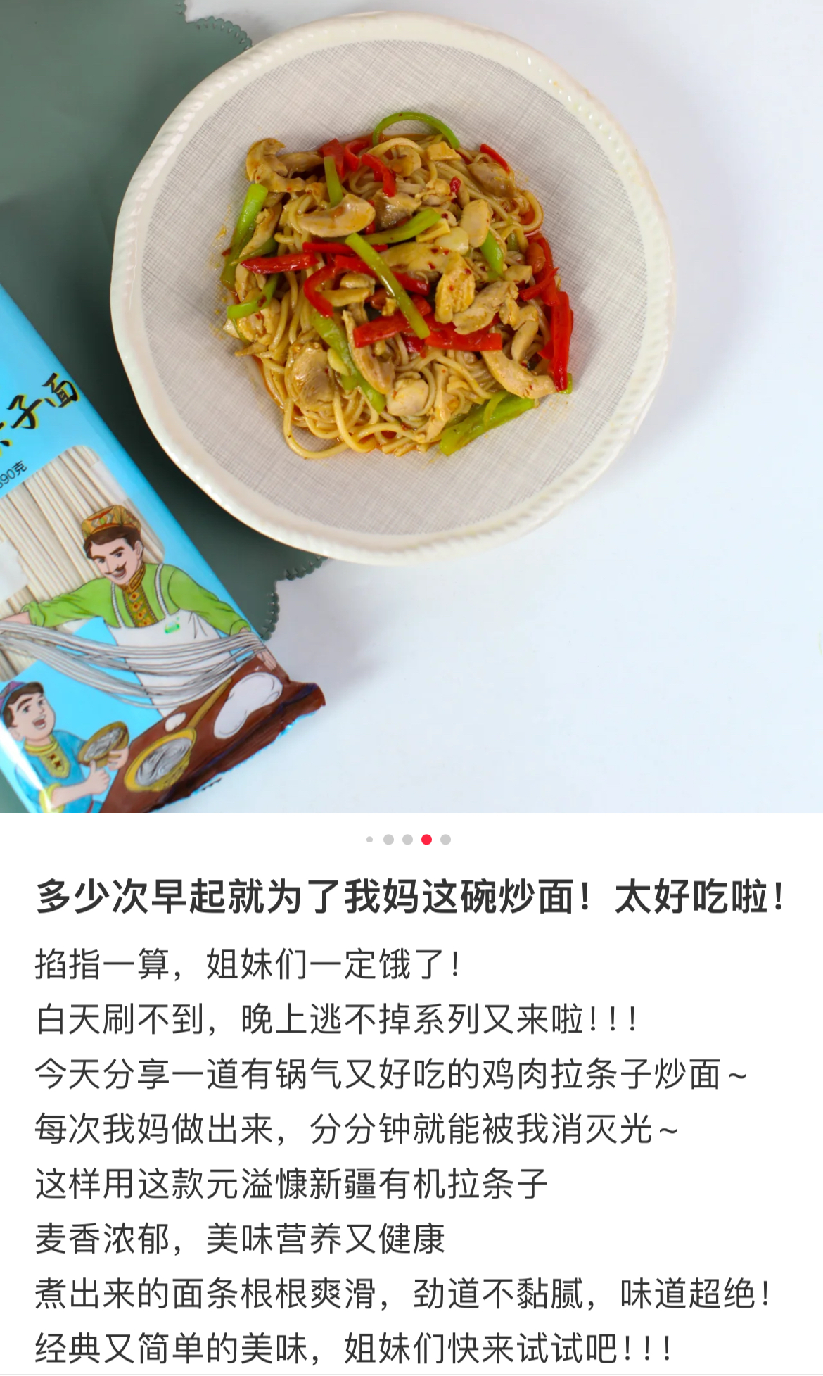 拉条子一袋390g,里面是一小把一小把分好的。只要把水烧开,放入拉条子煮熟,加把青菜、加颗鸡蛋,再调上自己喜欢的酱料,就可以美味开吃了,Q弹爽滑,筋道可口,一口下去满满的幸福感!除了做汤面,还可以做拌面炒面,拉条子煮熟捞出,热油炒肉,加上绿菜和小辣椒,加盐和调味料,就很绝了!还有最经典的新疆皮牙子牛肉拌面,也很值得一试:牛肉用料酒和淀粉抓腌,配菜切好,热油爆炒牛肉+洋葱,加点酱油、盐、花椒粉调味,加水煮到汤汁浓稠,拉条子另煮捞出,最后把酱汁配菜淋上,美味就完成了!