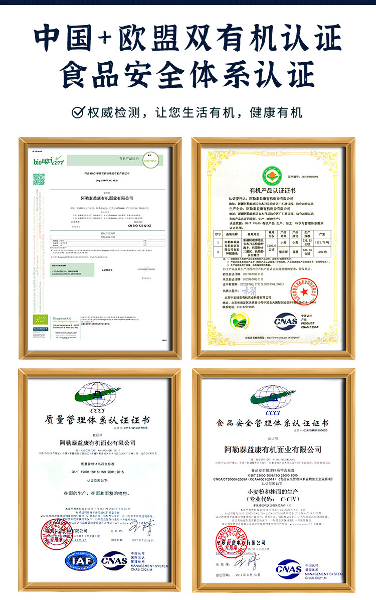 而且,元溢慷有机面是获得了国内外双重有机认证的,国内农残监测需200多项,欧盟500多项,有机监管严苛,一年一检更新证书,还会伴随市场随机抽检,从原料到生产加工全程可追溯,品质有保障!