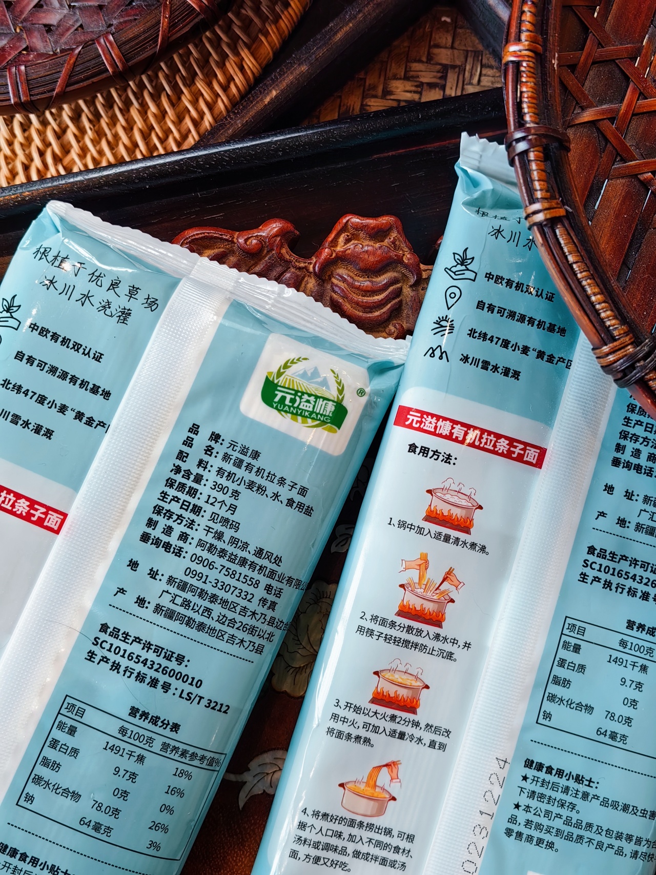 新疆阿勒泰的元溢慷拉条子,我收到其实有快一年了,因为店里面条很多,一大箱就被忽略在角落。这次理东西寄回杭州顺手放了一袋,结果被我妈做的鸡蛋面馋到,一试吃,相当赞,口感劲道,麦香浓郁!一了解才知道,还是有机的,各种证书和报告一大堆,去新疆旅行都会被当伴手礼呢!