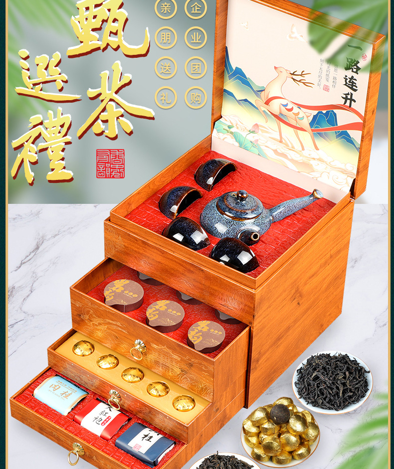 武夷山大红袍茶叶礼盒装高档肉桂岩茶浓香型普洱茶小沱茶过节送礼_ym