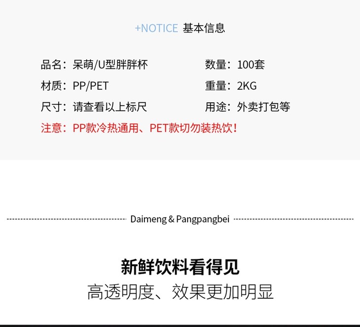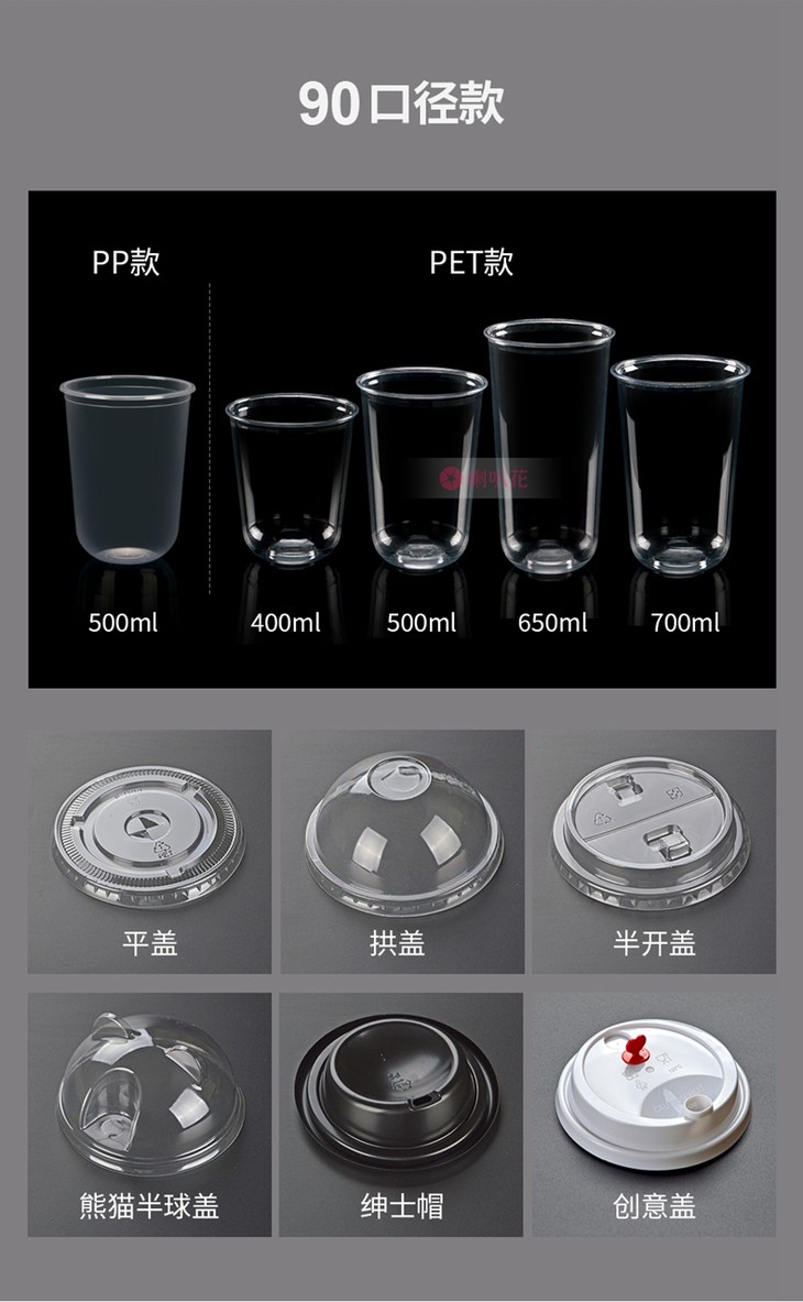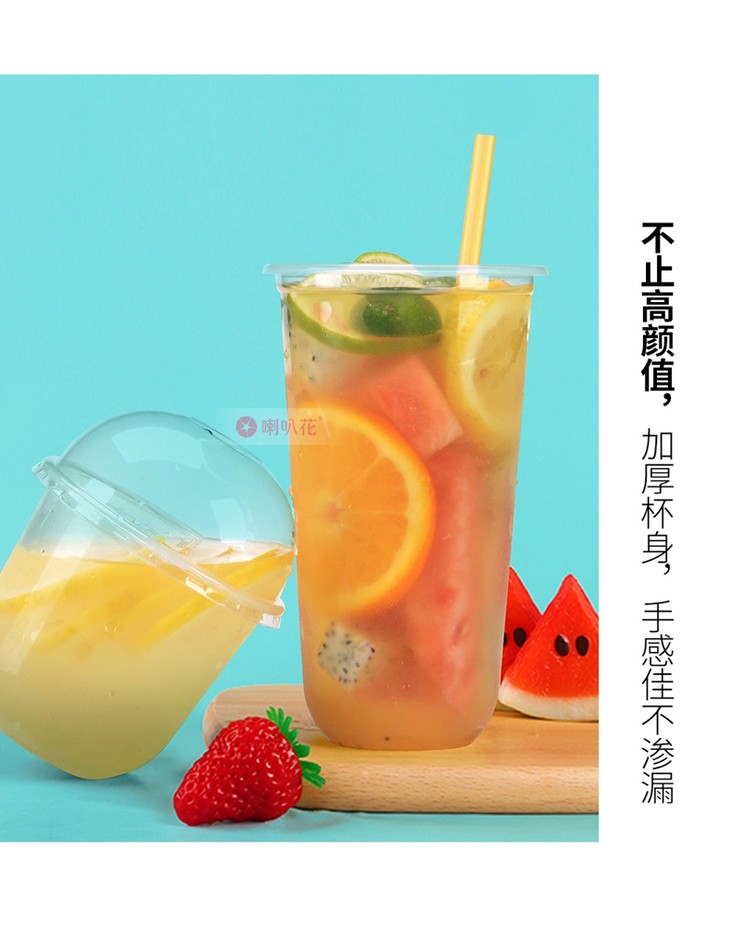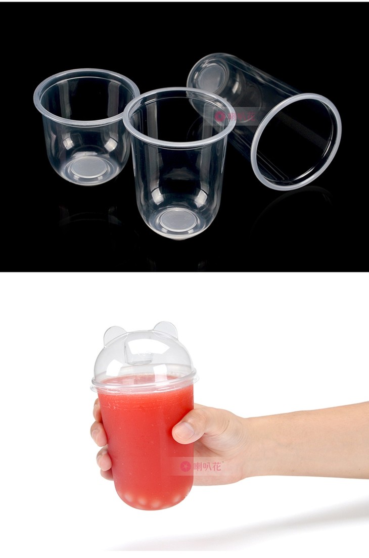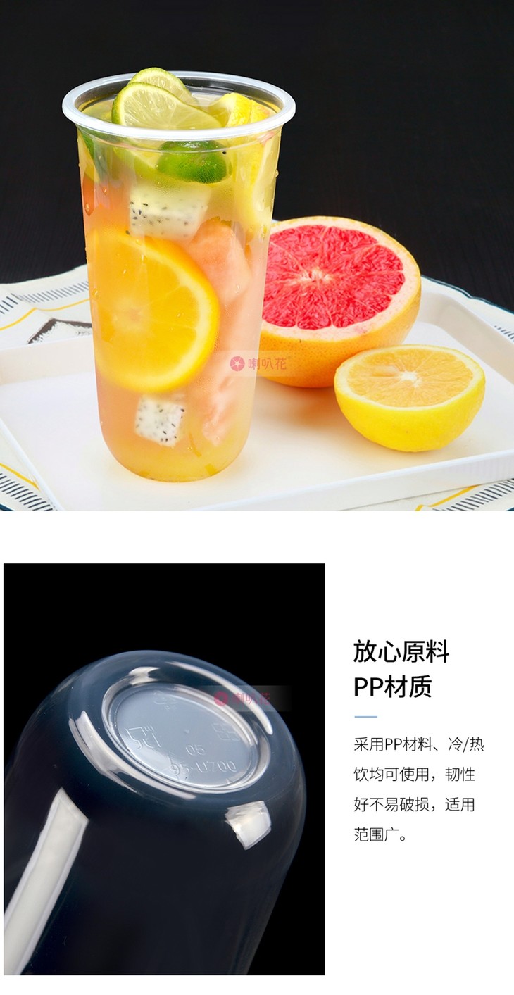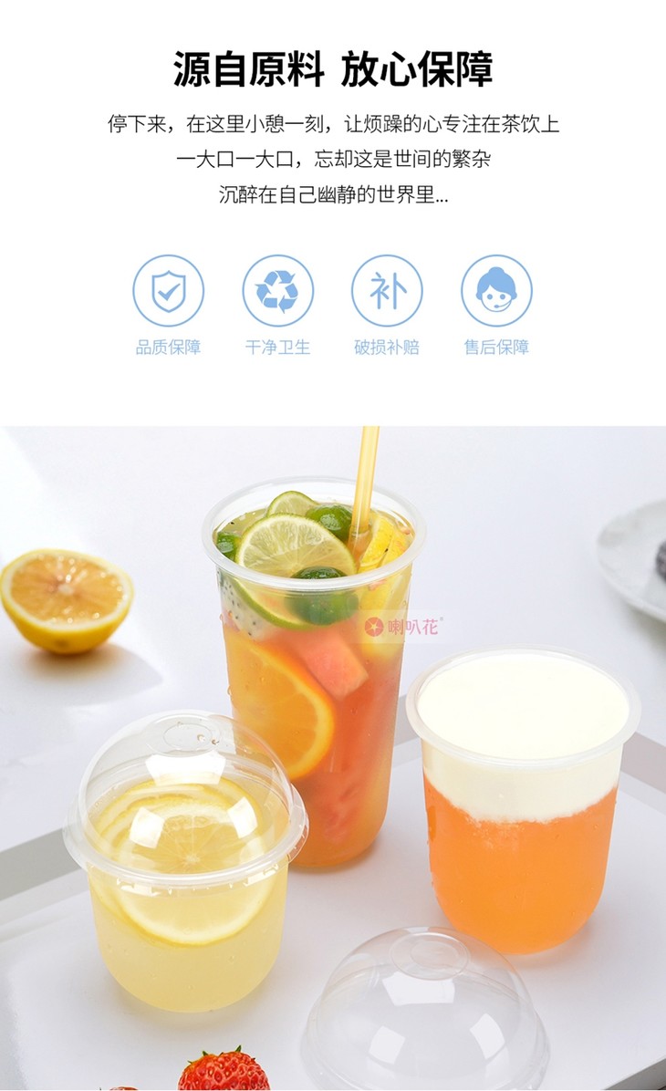 喇叭花PET一次性奶茶杯胖胖杯U型杯透明塑料冷饮料果汁杯带盖100套